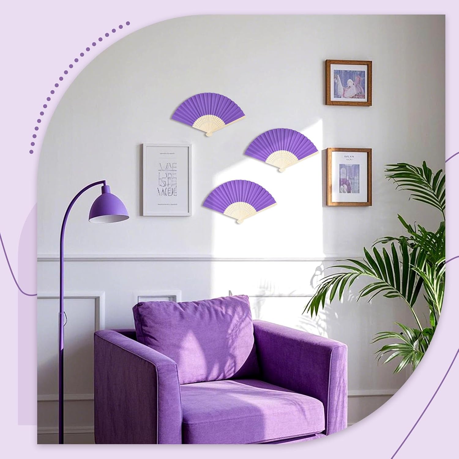 • Party and Wedding Must-Have · Photo-Ready Prop – This pack contains 12PCS purple paper folding fans (each about 8.3 inches long), making them a stylish choice for weddings, purple party decorations, birthdays, or summer events. Each fan opens and closes smoothly with one hand, producing a quiet motion that keeps the atmosphere relaxed. Whether for group photos, dancing, or mingling, these folding fans add elegance and charm to every occasion.