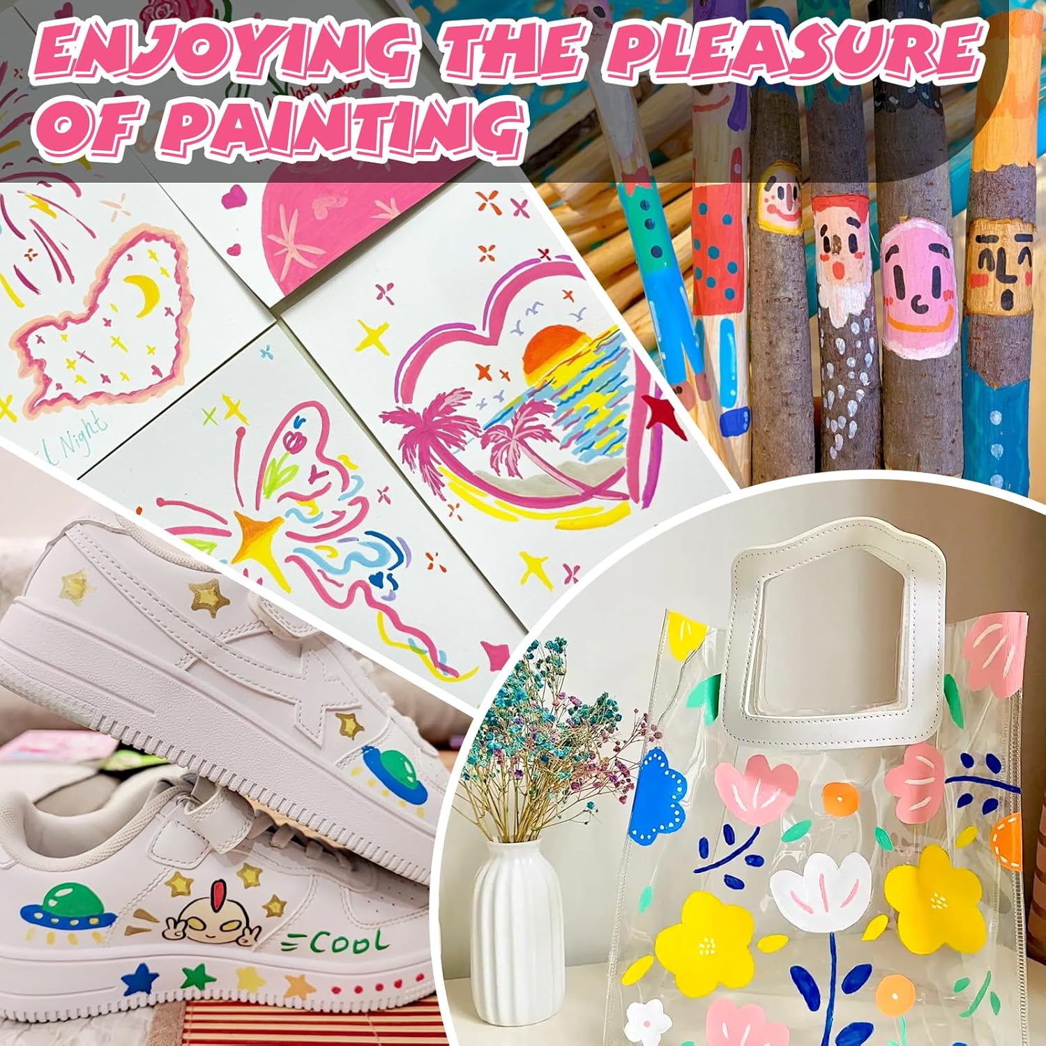 • 【Convenient to Use】Our paint pens with new design.You don't need to shake or press when using it,open the pen cap and you can start your creative journey.our acrylic pens are cotton nibs that it can be used directly.Warm tip:To ensure the smoothness of the ink, please place the pen flat and cover it with a pen cap after use.