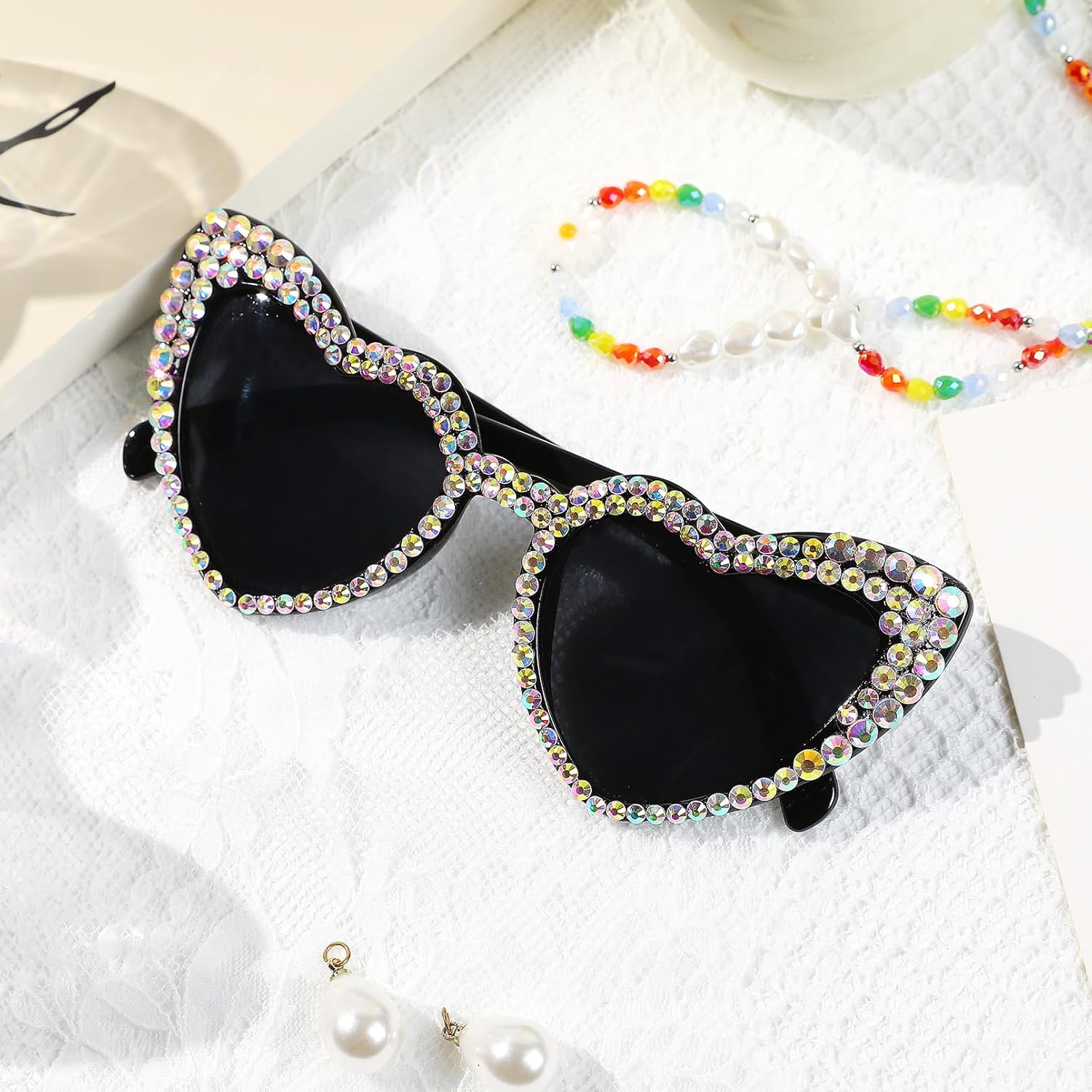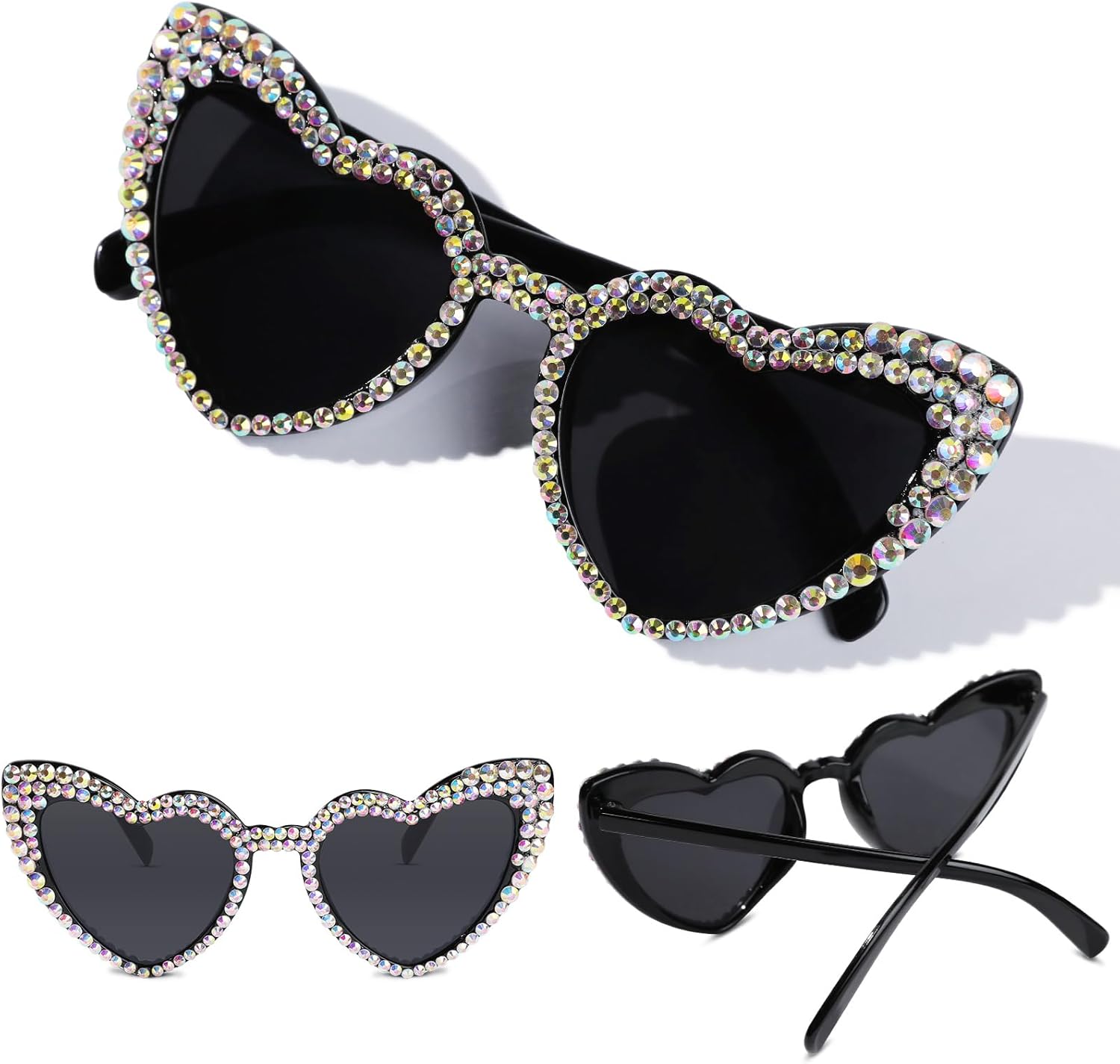 • [Photo-Ready Glam]: Capture unforgettable moments with our heart-embellished sunglasses. Ideal for wedding showers and bachelor parties, these cute sunglasses add a stylish touch to your photos and enhance the celebration.