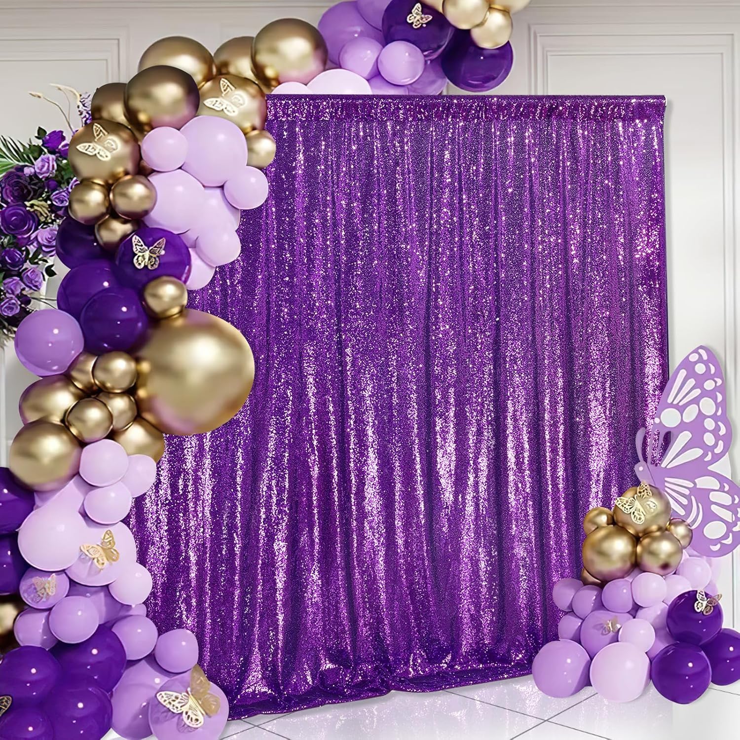 Purple Sequin Backdrop 8ft x 8ft Glitter Party Backdrop Curtains Glitter Background for Baby Shower Wedding Decorations