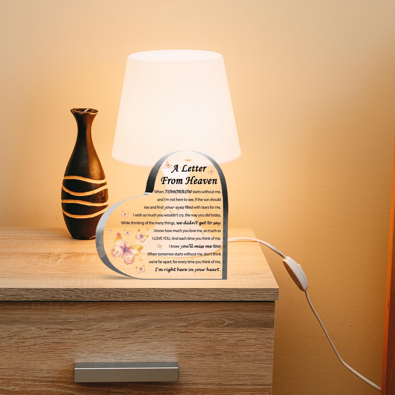 Sympathy Gifts - A Letter from Heaven- Memorial Gift for Loss of Mother Father Husband Son, Acrylic Heart Keepsake,Remembrance Sympathy Gifts (Butterfly)