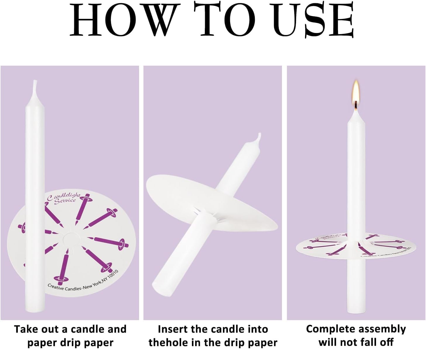 • Practical: The 3" drip protector is made of heavy duty paper with a shiny white coating on both sides, you can simply pass the pillar candle through the middle of the drip protector and light the candle with confidence without wax dripping or spilling