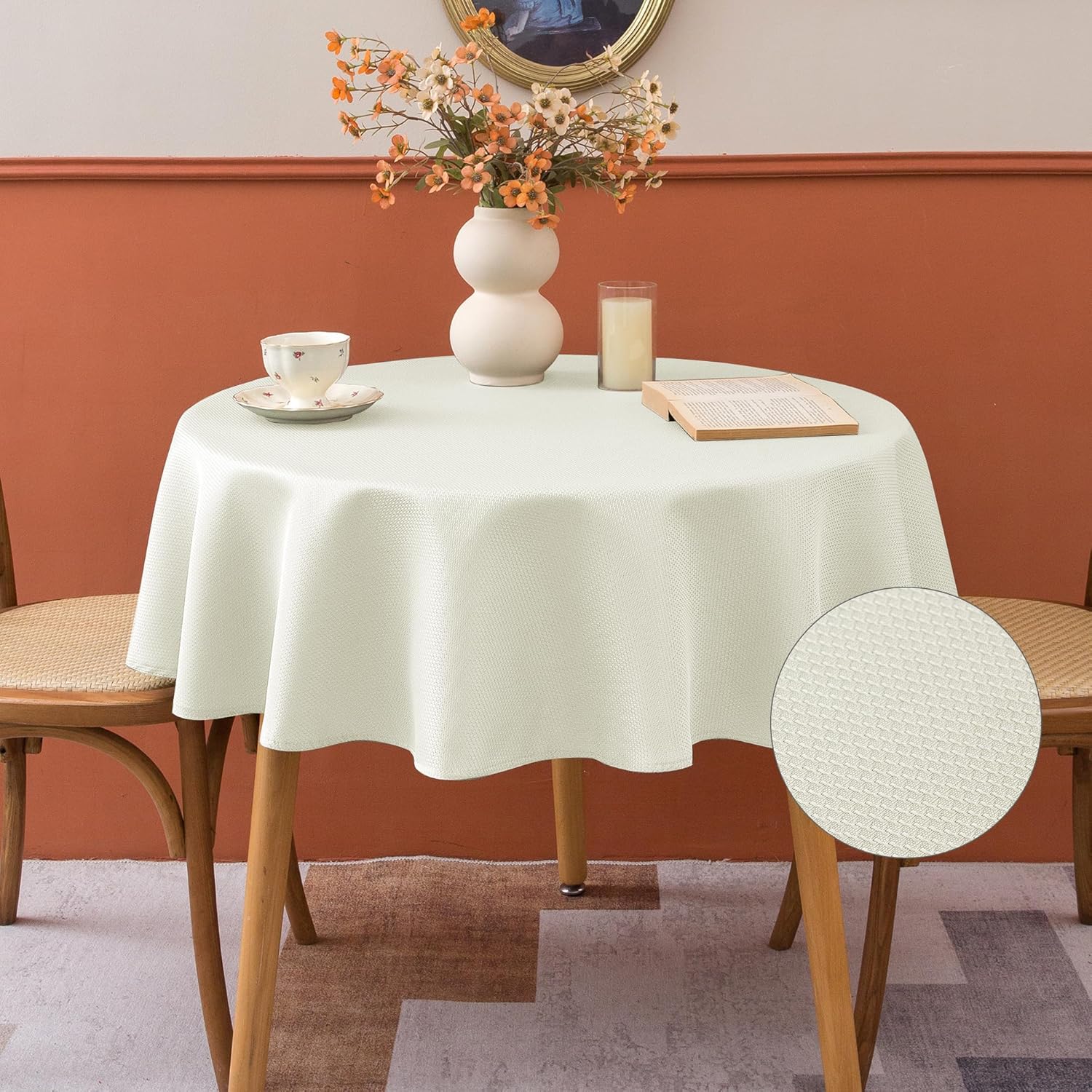 • High-Quality Material: This woven textured tablecloth are made from 180 GSM 100% polyester. Durable and thickness fabric ensures the lone-lasting use and add a beautifully classic look.