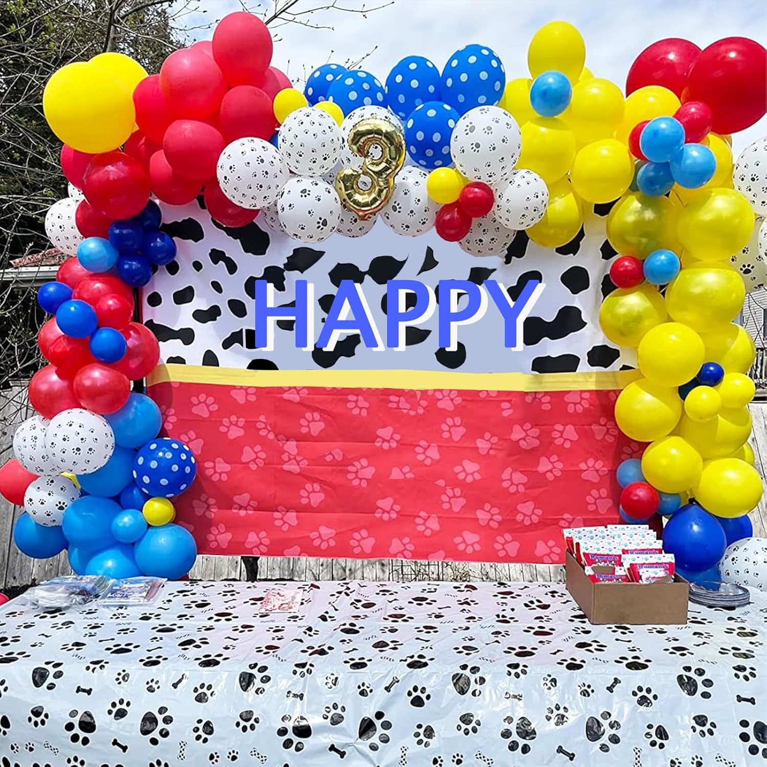 • Dog Paw Party Balloons: 30pcs 12 inch balloons set, include 5pcs Dog Printed balloons, 5pcs red latex balloons, 5pcs dark blue latex balloons, 5pcs light blue latex balloons, 5pcs yellow latex balloons, 5pcs colorful confetti latex balloons and 1pc ribbon. Perfect for a puppy theme party