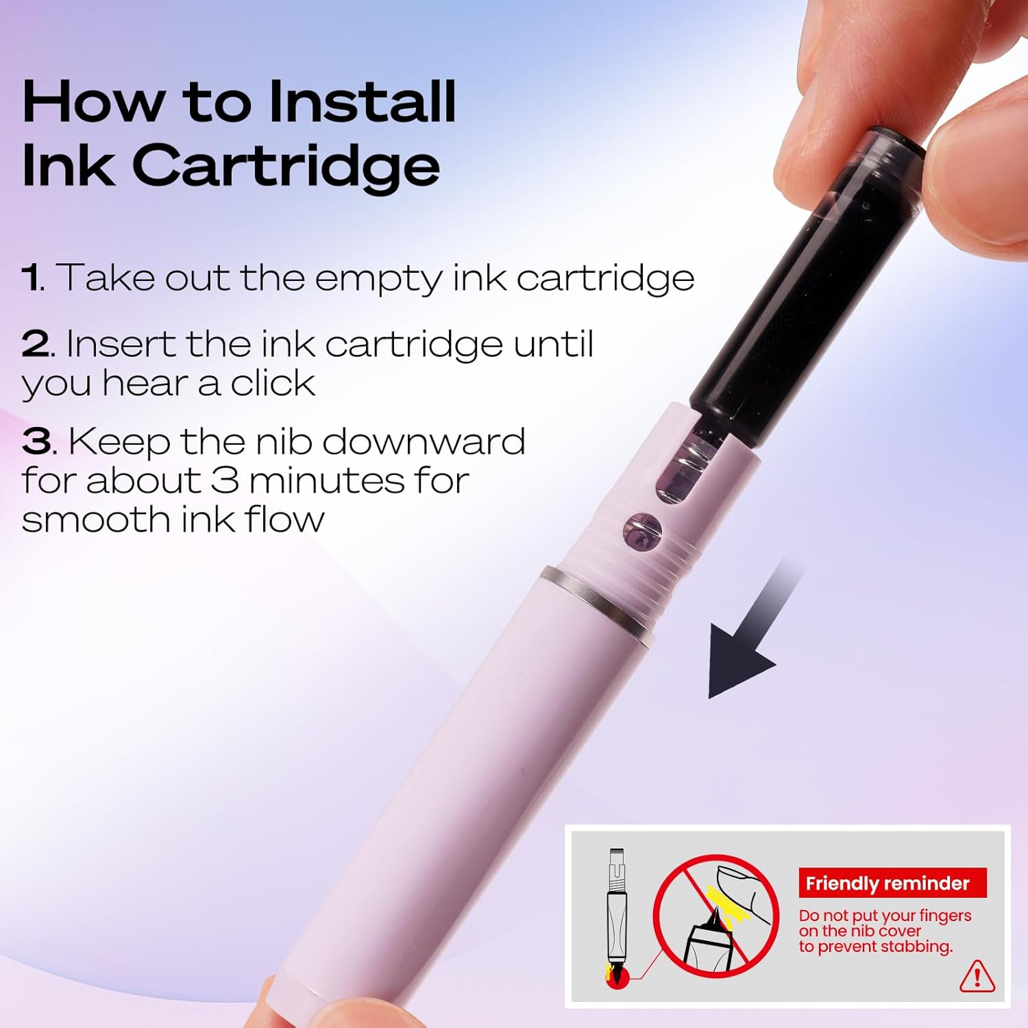 • Fine nib black ink, 1 retractable fountain pen includes 5 cartridges