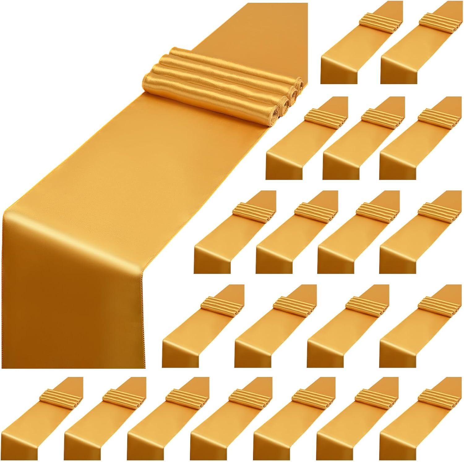 20 Pack Gold Satin Table Runner,12 x 108 inch Long Premium Smooth Gold Table Runners for Wedding, Banquets, Birthday, Party, Engagements,Table Runners fit Rectangle and Round Table