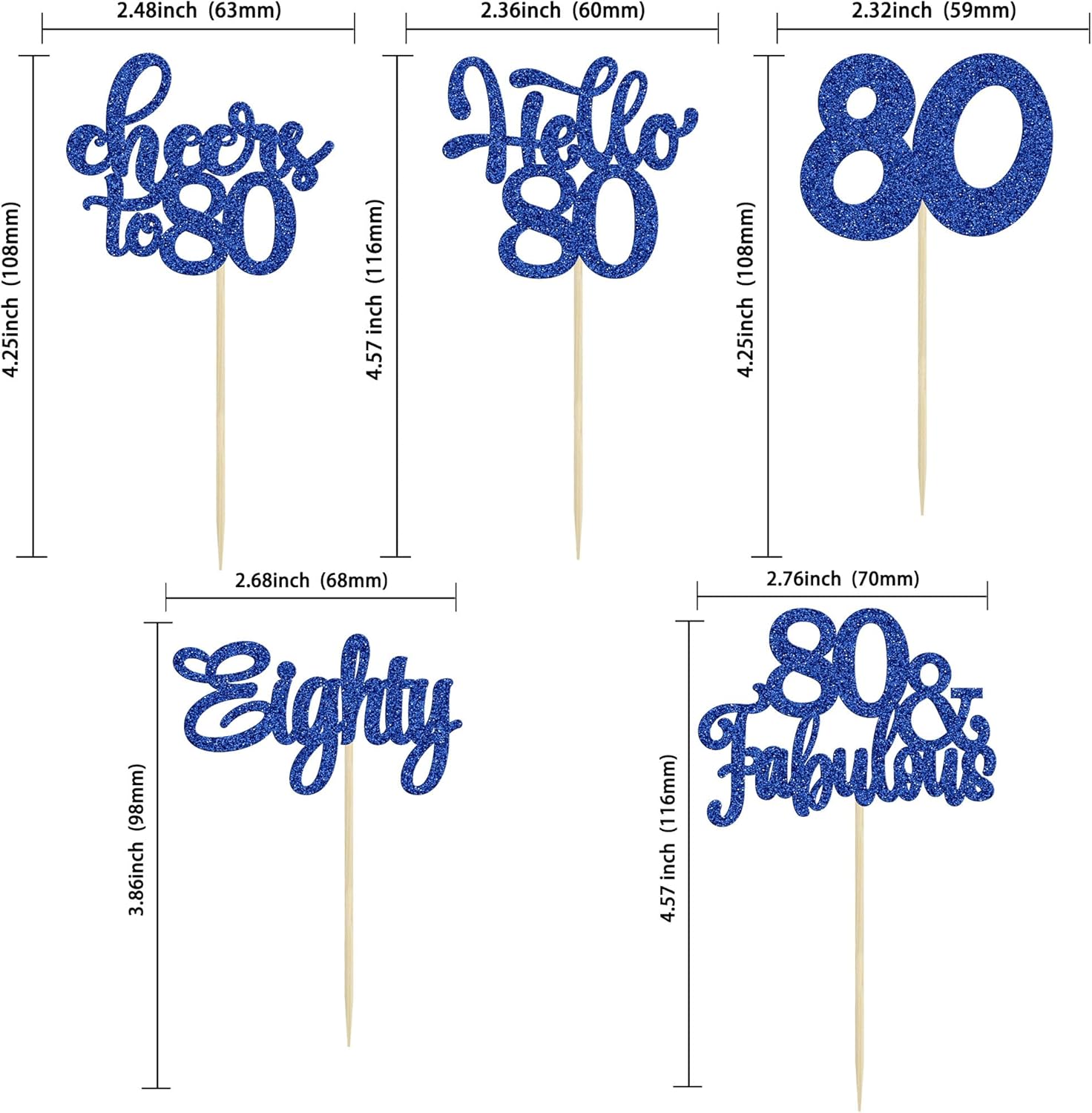30Pcs Happy 80th Birthday Cupcake Toppers Eighty Cheers to 80 Years Old Birthday Cupcake Picks for Happy 80th Birthday Anniversary Party Cake Decorations Deep Blue Glitter