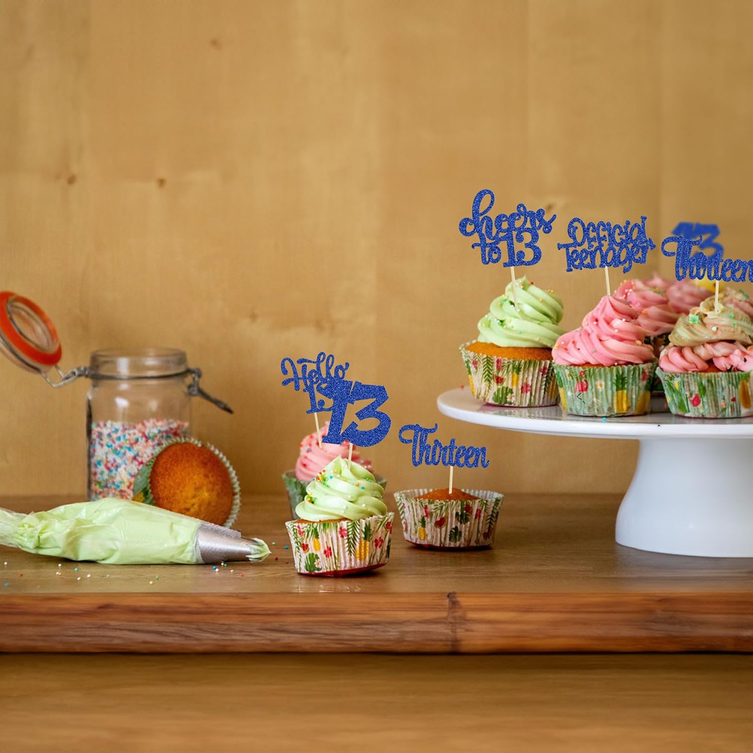 • -Package included: 24Pcs Happy 13th Birthday Cupcake Toppers. Comes with assembled, so you can insert into your cake directly, which make your cake more interesting.