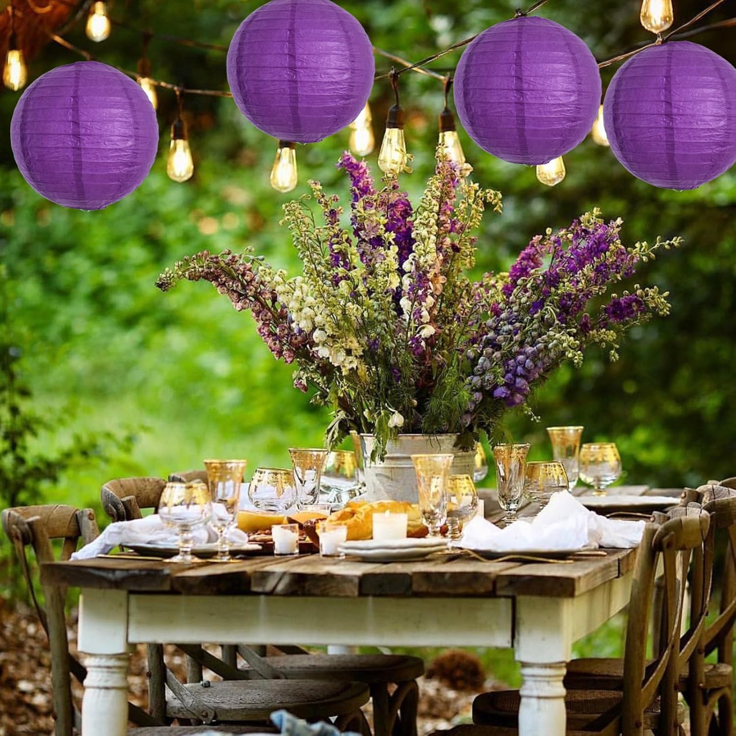 BEISHIDA 12-Inch Purple Round Paper Lanterns Hanging Decorative Chinese Paper Lanterns Lamp for Halloween Mardi Gras Birthday Wedding Party Decoration and Baby Bridal Shower(6 Packs)