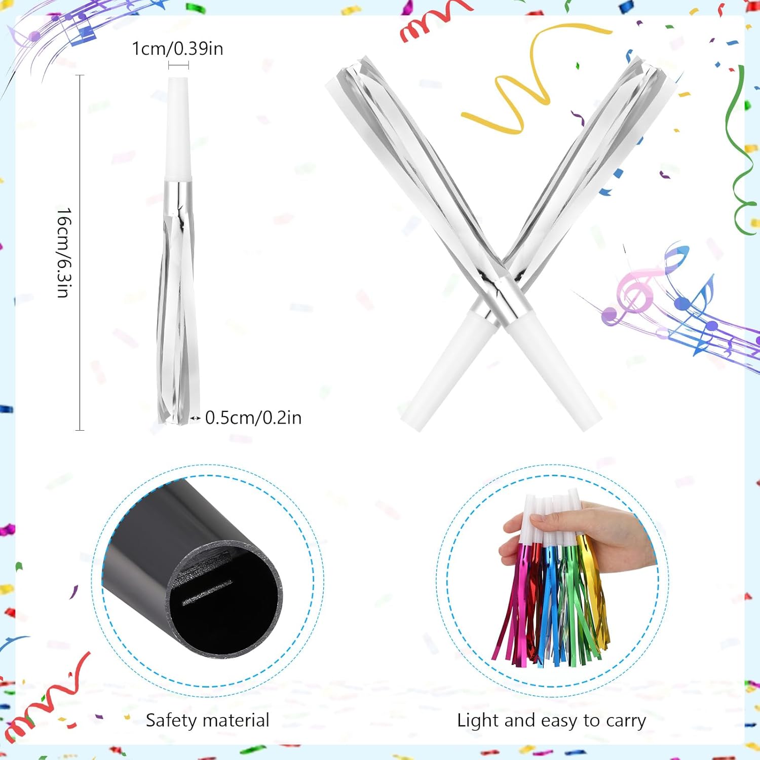 • Party favor for kids: The party noisemakers are approximately 16 cm/6.3 inches long, making them small and lightweight. They are easy to carry and store, which makes them suitable for most children to hold comfortably.