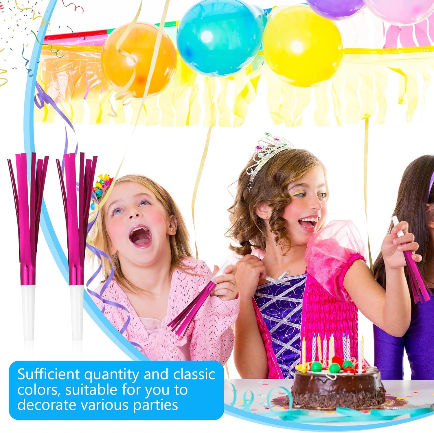 • Party favor for kids: The party noisemakers are approximately 16 cm/6.3 inches long, making them small and lightweight. They are easy to carry and store, which makes them suitable for most children to hold comfortably.