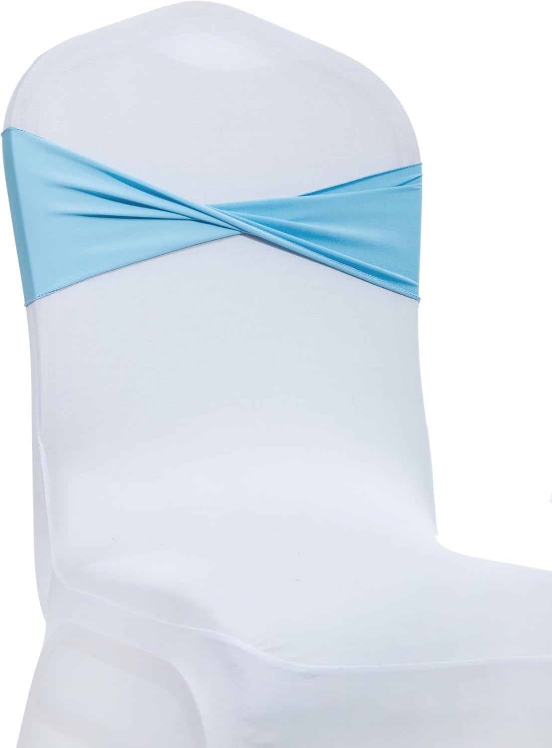 MDS Pack of 25 Spandex Chair Sashes Bows Elastic Stretch Dining Chair Bands Ties Without Slider Buckle Universal fits for Wedding Baby Shower Birthday Party Banquet Event Decoration - Blue