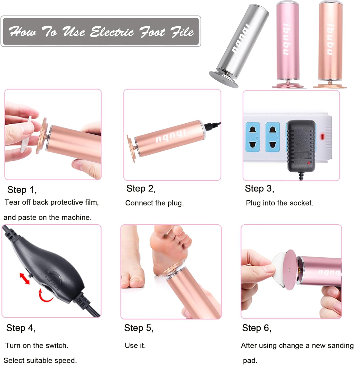 • 【ibubu Packaging Details】1 x elelctric foot file, 1 x box repacement sandpaper disk(60pcs), 1 x US plug, 1 x user manual. Please note that our Electric Feet Callus Remover products and packaging both feature our brand logo 'ibubu'. Products without the 'ibubu' logo are not produced by our manufacturer