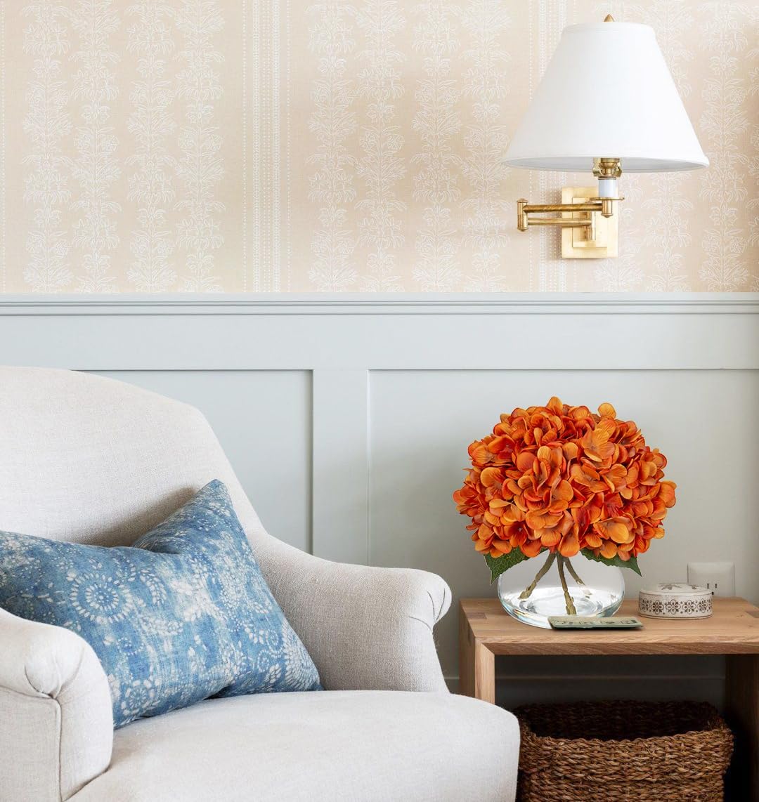 Hollyone Orange Fall Hydrangea Artificial Flowers for Decoration with Vase Silk Fake Flowers Arrangements in Glass Vase with Faux Water Autumn Festival Table Centerpiece Fall Decorations for Home