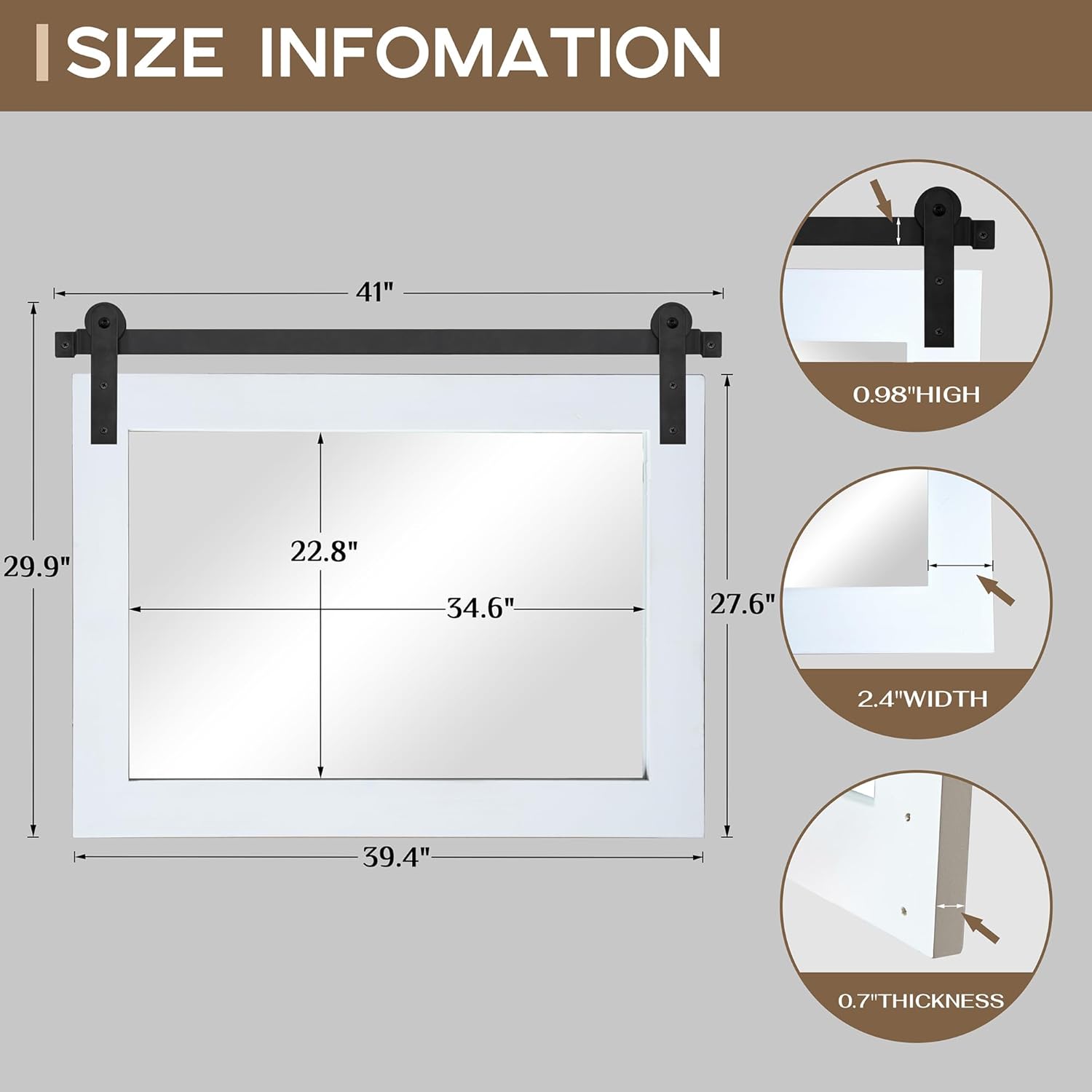 COGOOD Farmhouse Bathroom Mirror - 41" x 30" Rustic Barn Door Mirror for Living Room, Entryway, Bedroom, Vanity Wall Decor (Pure White)
