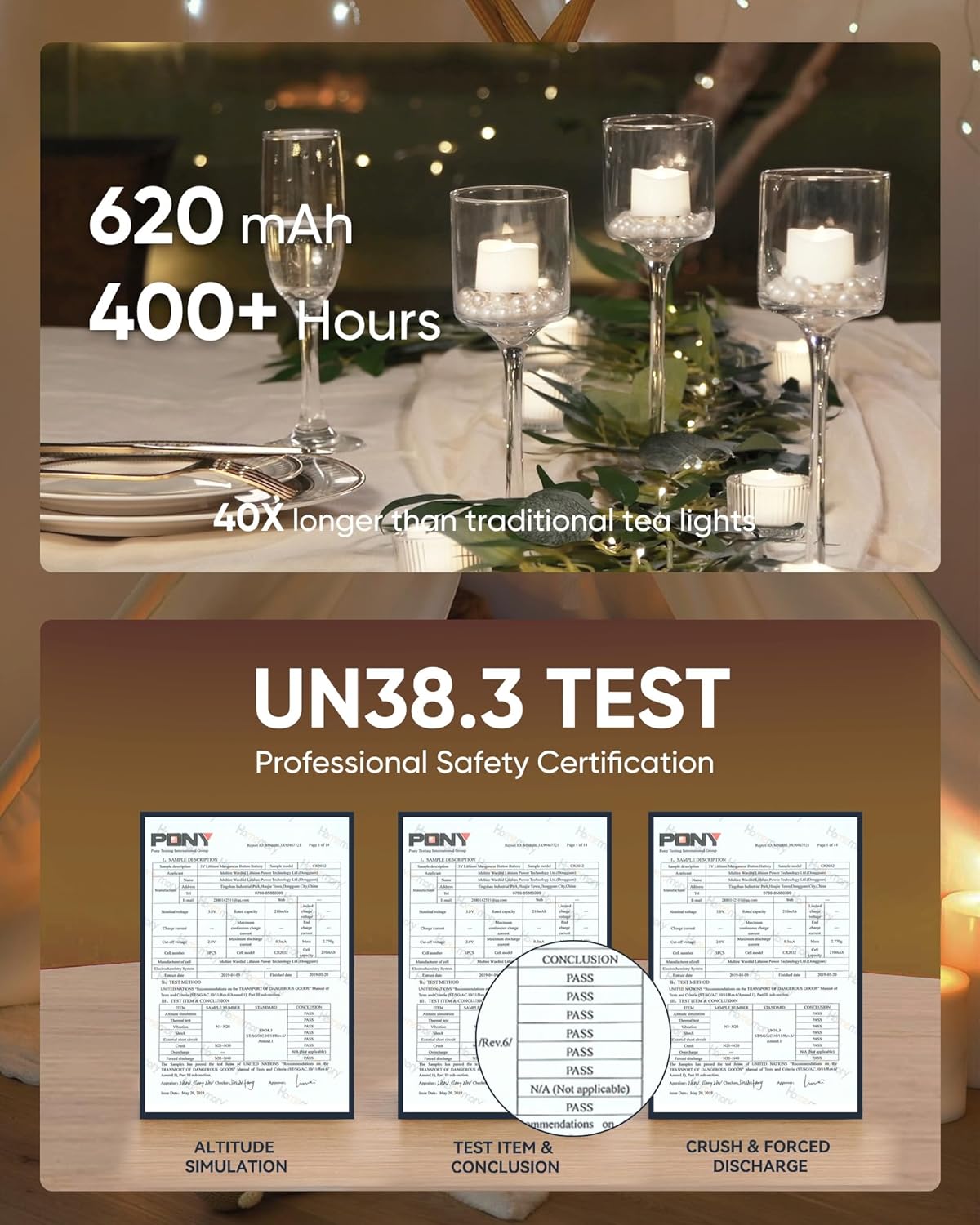 • UPGRADED 620mAh BATTERY: Pre-installed with premium CR2450 batteries, offering 400+ hours of illumination. With 2/4/6/8H timer modes, they can last nearly a month, ensuring continuous operation throughout your parties, weddings, and holidays