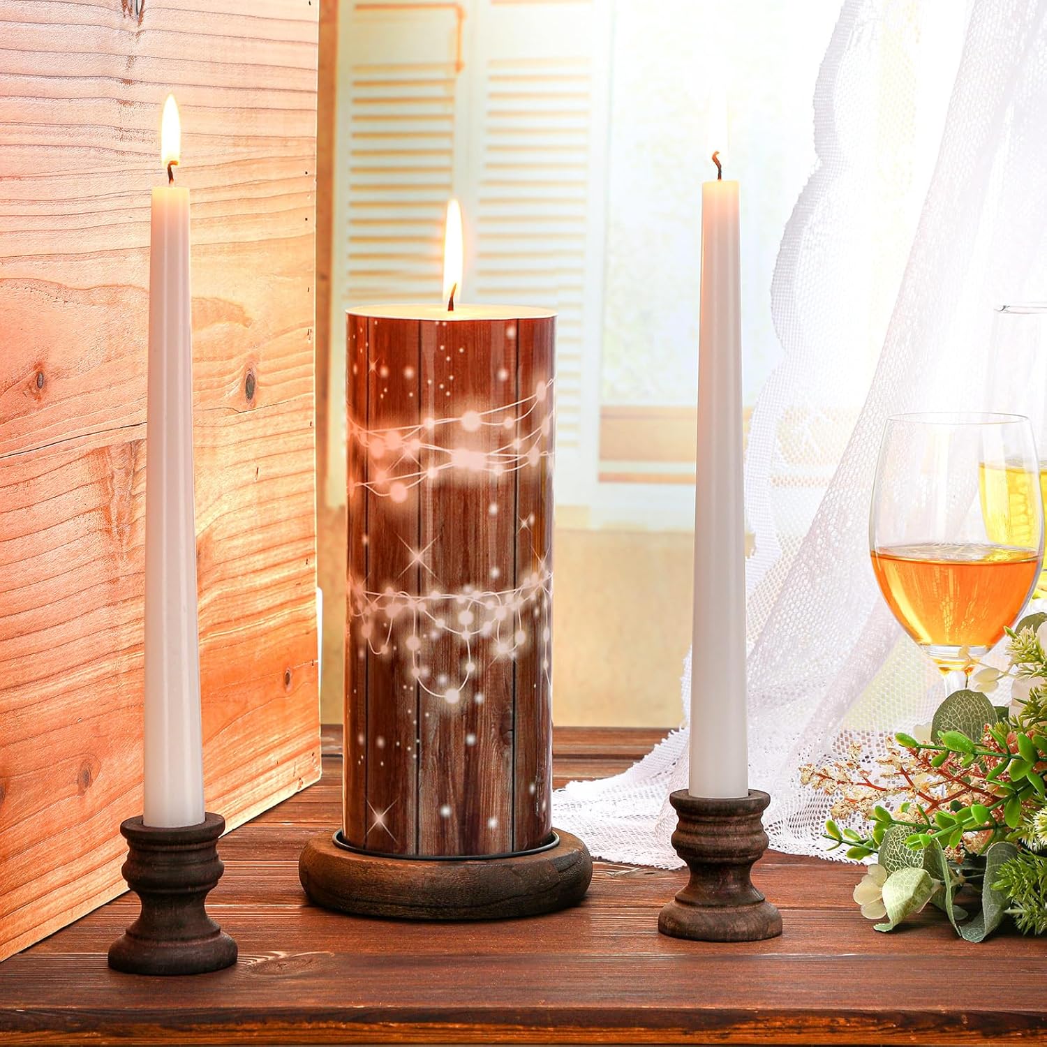 • Reliable Material: the candles for wedding are made of wax material, reliable and safe to use, and the decoration is manually pasted with glue, there may be glue overflow, but it does not affect the appearance, kindly noted; The candle holders are made of wood, thick and sturdy, can be applied for a long time