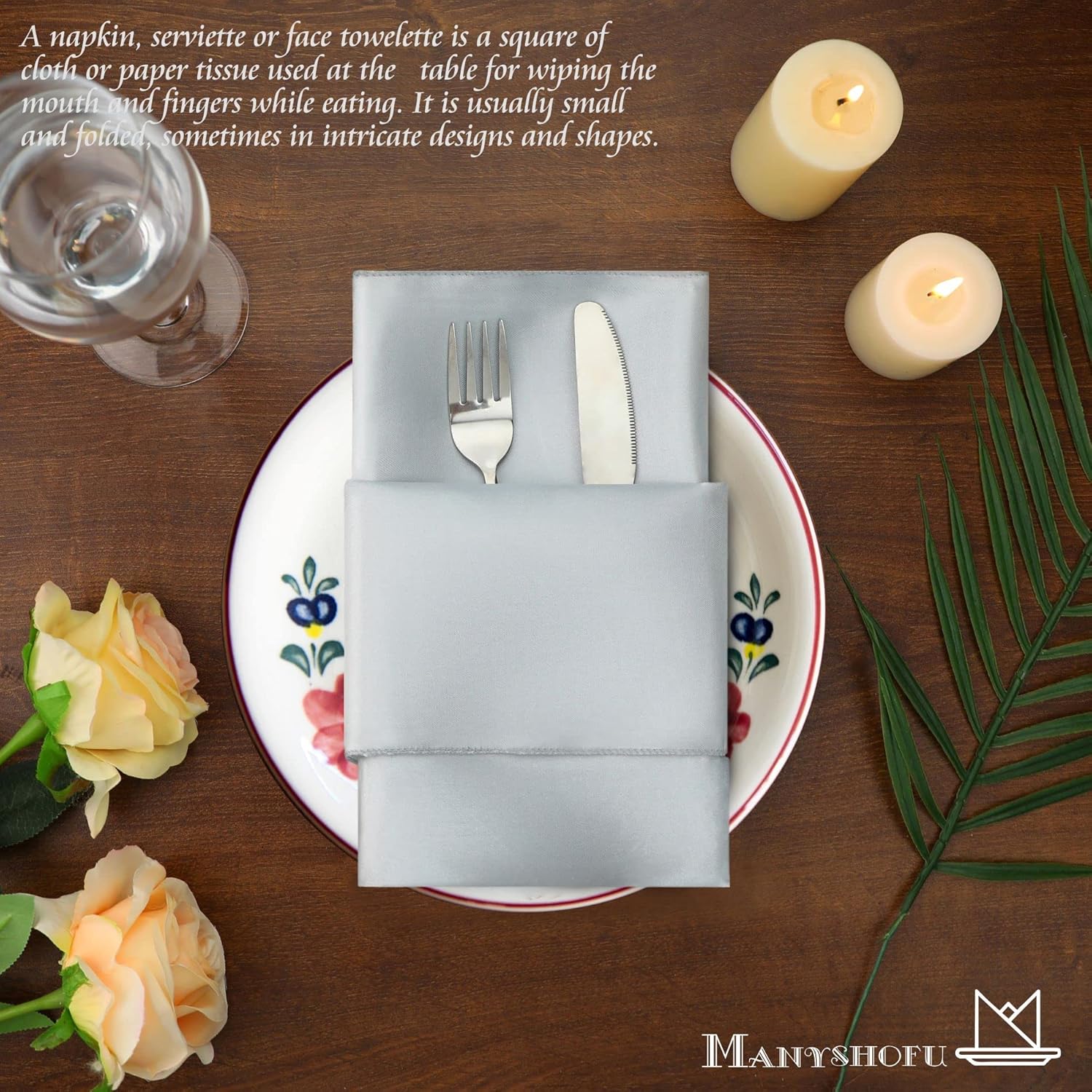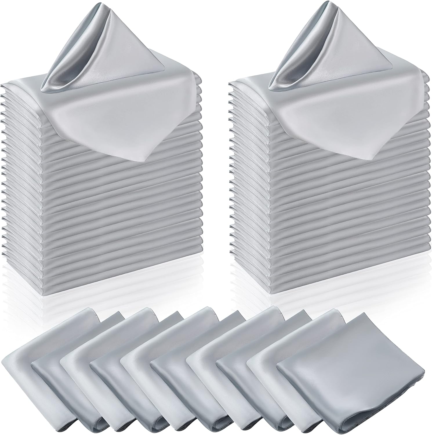 Manyshofu 50 Pieces Silver Satin Napkins - 12x12 Inches Cloth Napkins, Square Satin Fabric Napkin Set - Elegant & Smooth Table Napkins for Wedding Dinner Party Lunch Banquet Decoration