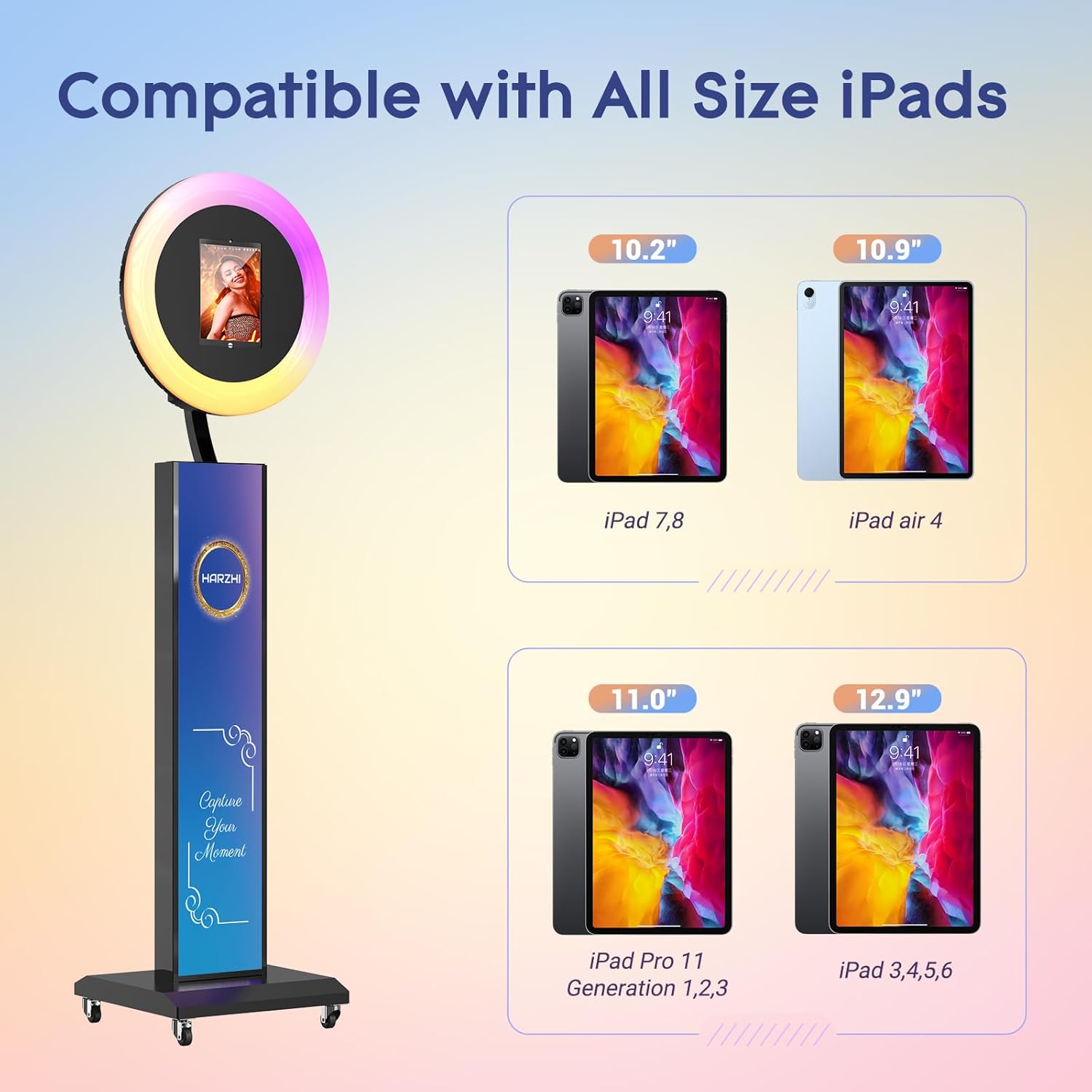 HARZHI Portable Photo Booth Compatible with Ipad, Large Lightbox Ipad Photo Booth for Christmas Wedding Party Provide ChackTok Software APP VIP, Free Custom Logo, Flight Case