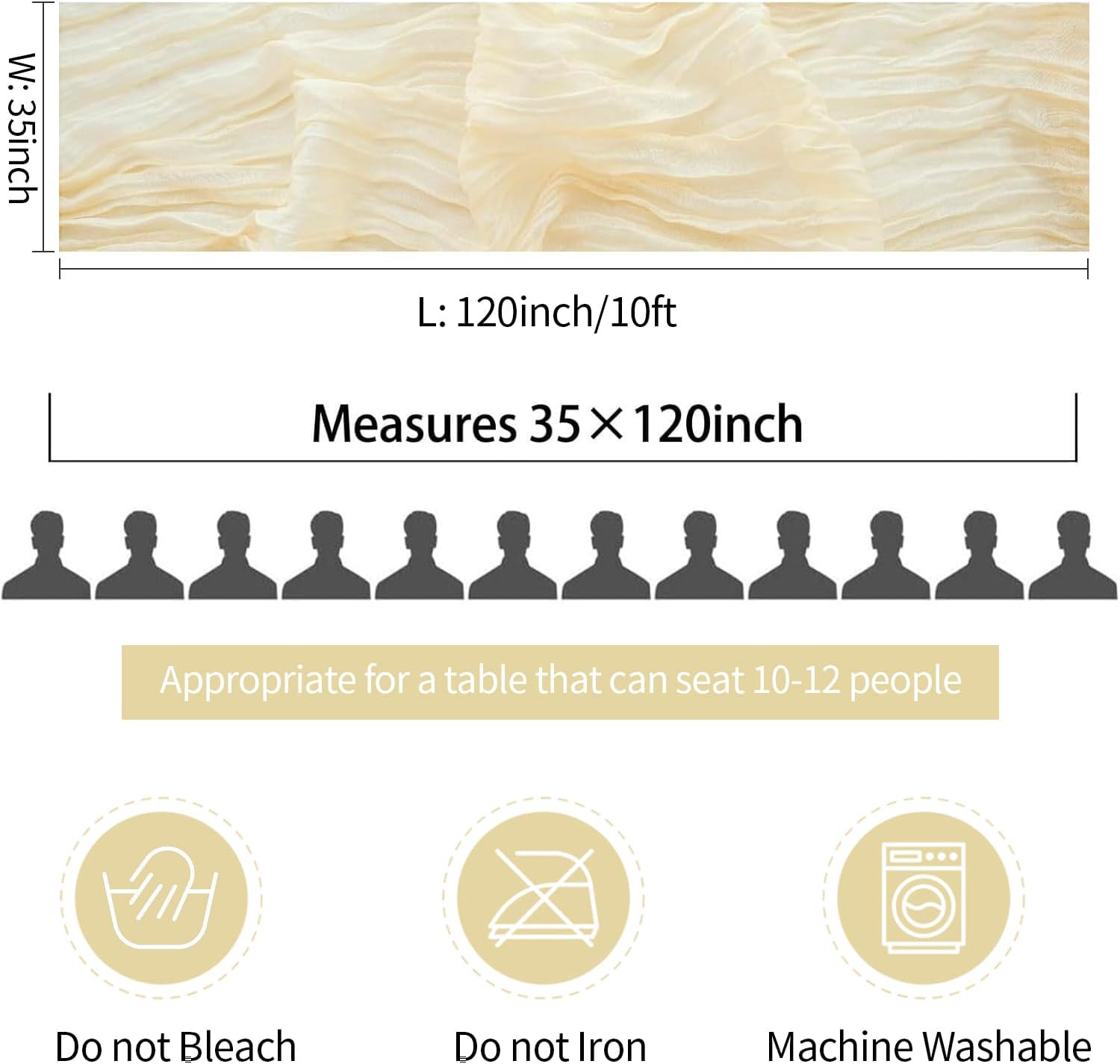 • 🌟【Care Instructions】Our cream colored table runners are recommended for hand wash in cold water with mild detergent, or machine wash in the gentle cycle with a laundry bag; In order to maintain wrinkled texture, please do not iron or use hot water, lay flat or hang dry, which are better for keeping these cheesecloth table runners for a long time use. Please kindly noted that there might be color variation due to screen resolution and limitations in photography.