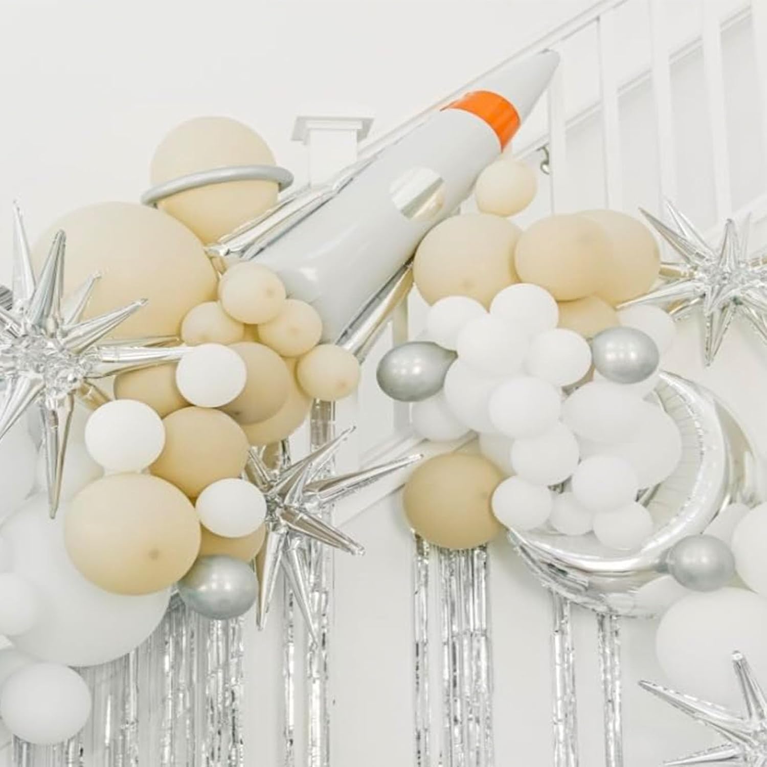 • 【Quality Material】The silver star balloons are made of high quality aluminum foil, which is sturdy and durable, not easy to leak gas or break during inflating. And you can also use a straw inserted into the inflation port to deflate the air or helium for next time to use.