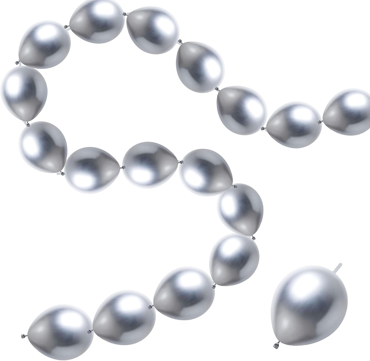 • 【THE PACKAGE INCLUDES】50 PCS 6 inch silver metallic link balloons. you can use the linked balloons to link these balloons end to end, which are easy to assemble, meeting your need for party decorations.