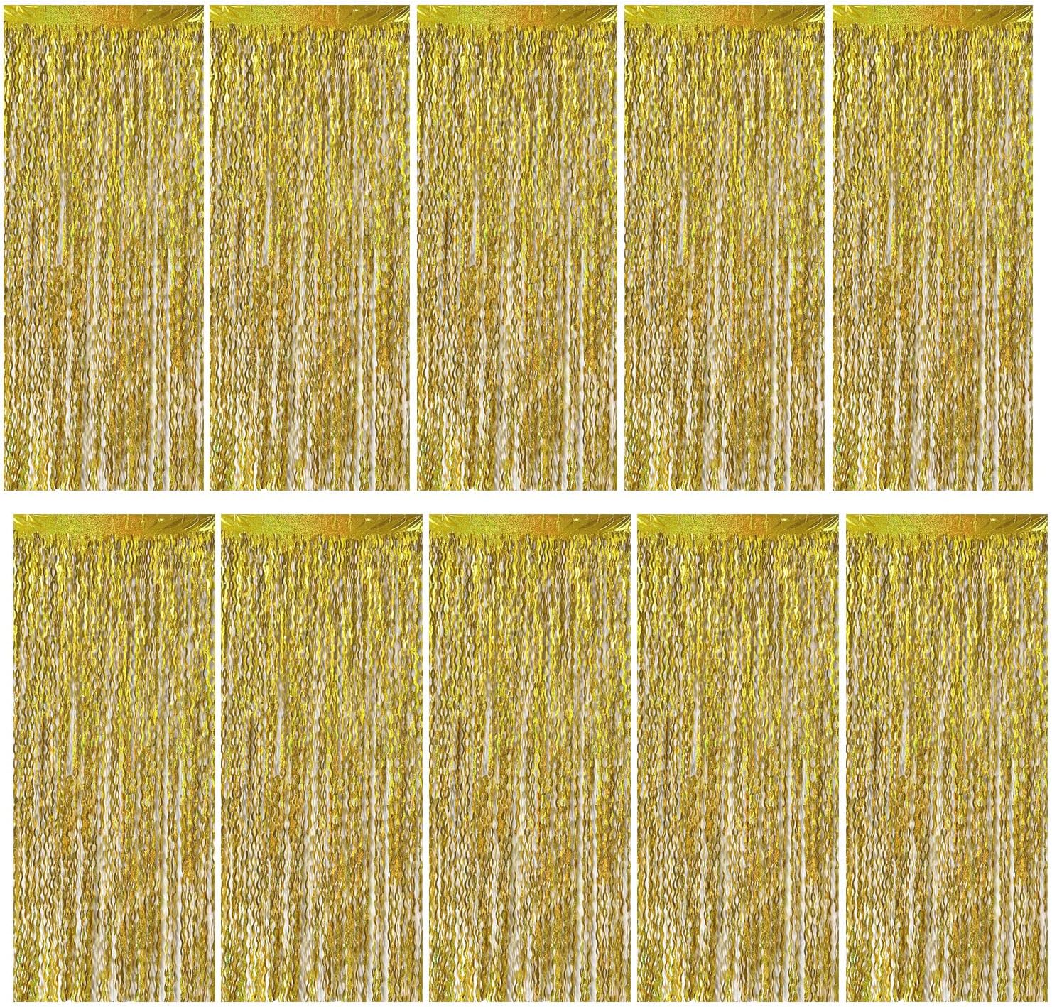 • Gold Backdrop :10 Pack, each curtains size is 3.28 ft x 6.56 ft, enough length foil fringe backdrops are perfect for the door, wall and table,feel free to cut to any length you want.