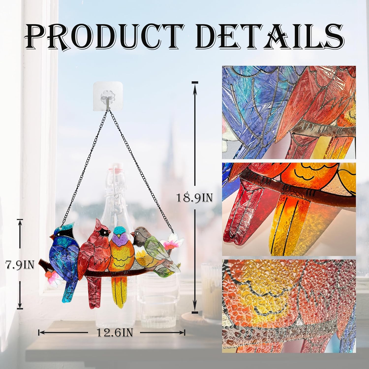 • Captivating Bird Design:The detail on this piece of stained glass art is exquisite, There are 4 birds on the branch, how each bird is painted with a different color. The colors are bright and the birds are cute. This sun catchers indoor window a touch of nature's grace to window .Handmade gifts specially made for your mon, children, friends, sisters customers and colleagues, etc.