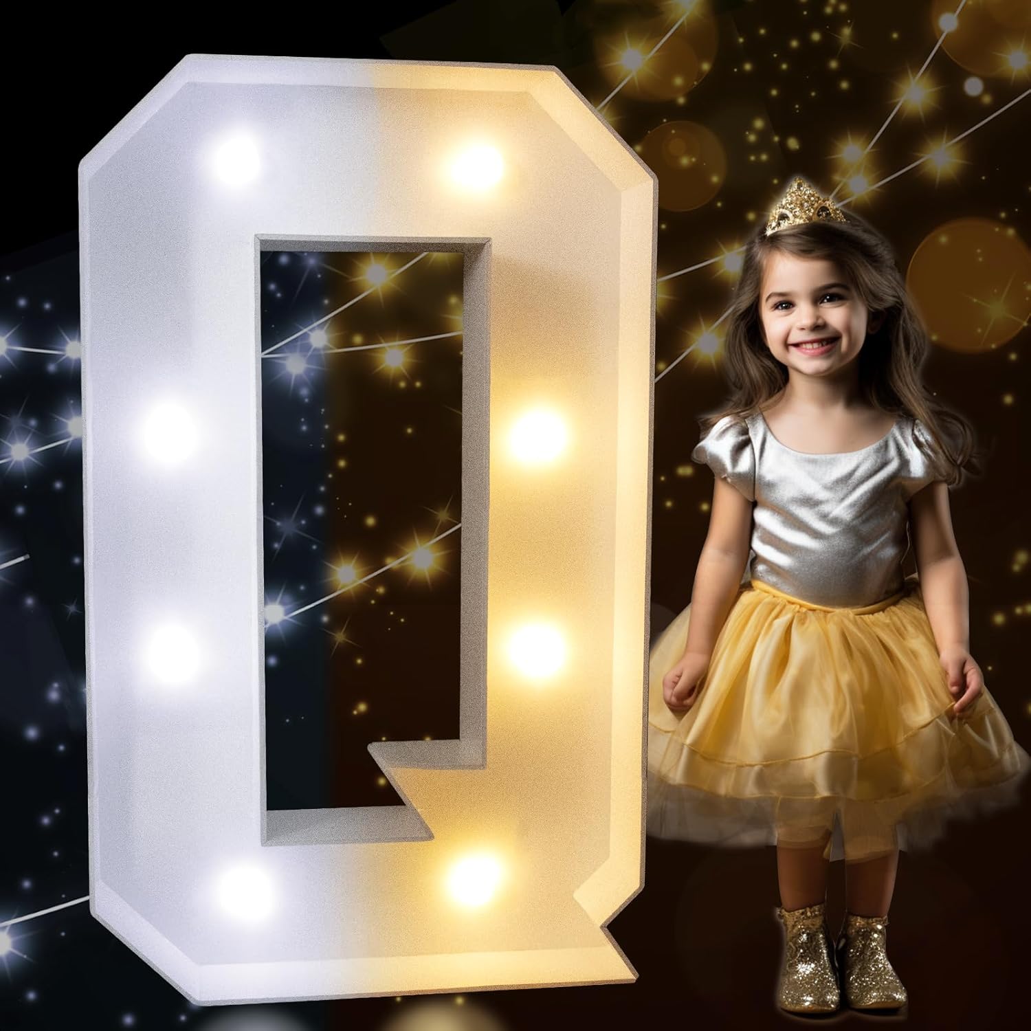 Pooqla 3FT Marquee Light Up Letters, Cool White and Warm White LED Big Mosaic Marquee Letters 3 Feet, Giant Letter Sign for Balloons Birthday Anniversary Wedding Party Decoration, Letter Q
