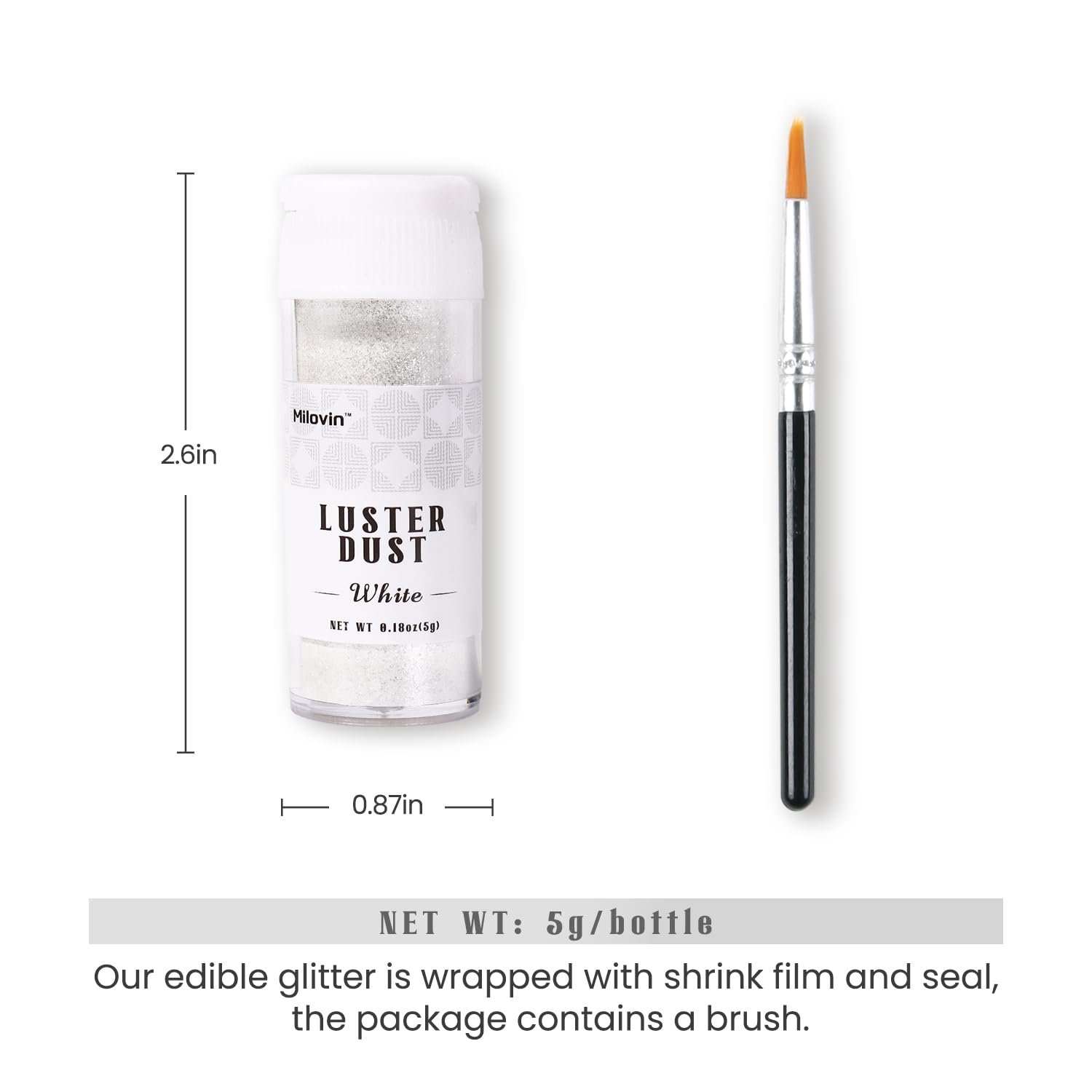 • White Edible Glitter: Made of food-grade mica powder and food coloring, odorless, and tasteless. It makes the food add a magical color and more vivid, and it doesn't affect the texture! Vegan, nut-free, gluten-free, adults or kids can be safe to use.