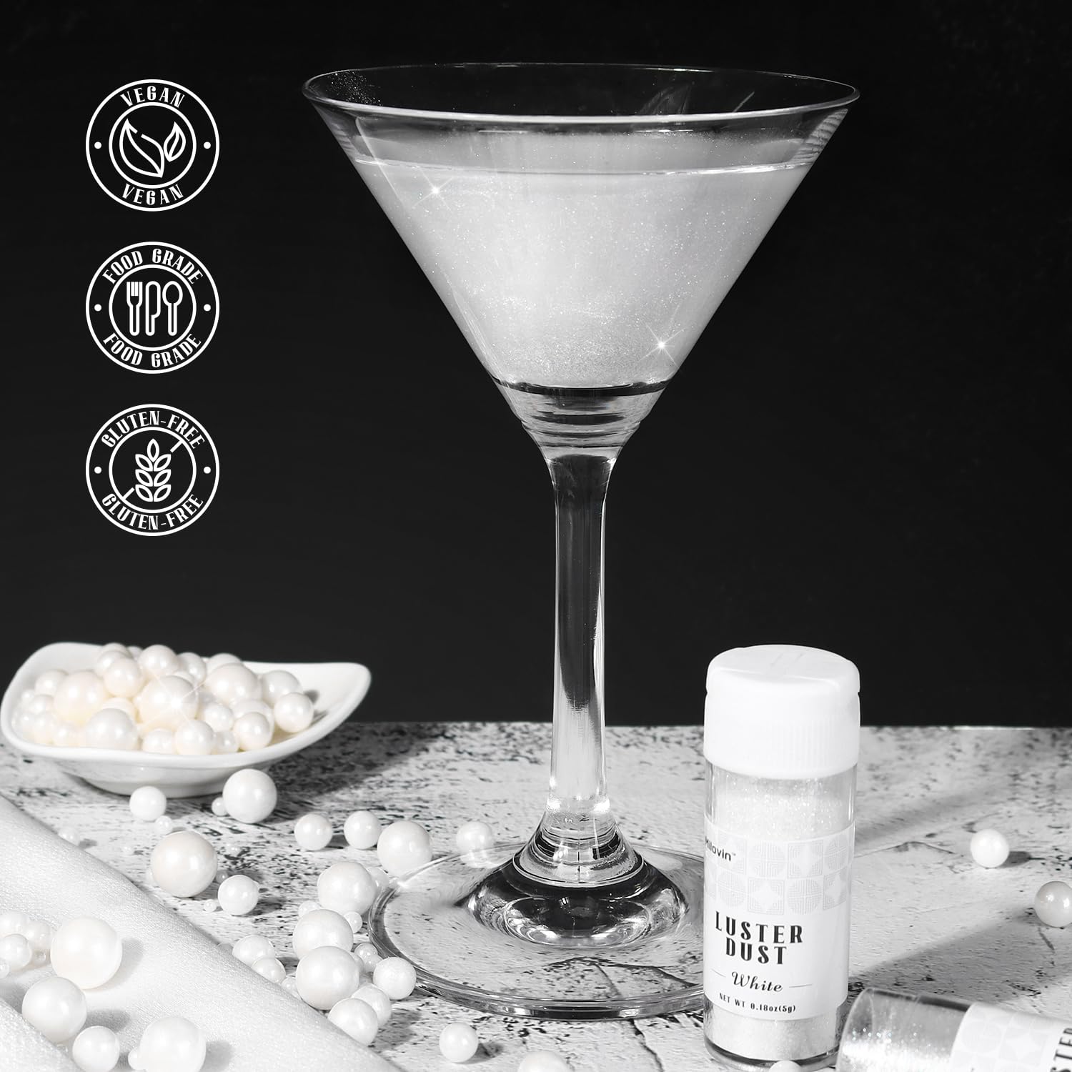 White Edible Glitter for Cake Decorating, 5g White Luster Dust Edible for Drinks, Glitter for Cocktails, Drinks, Macaron, Cookies, Cupcakes, Chocolate, and Strawberries(0.18oz, white)