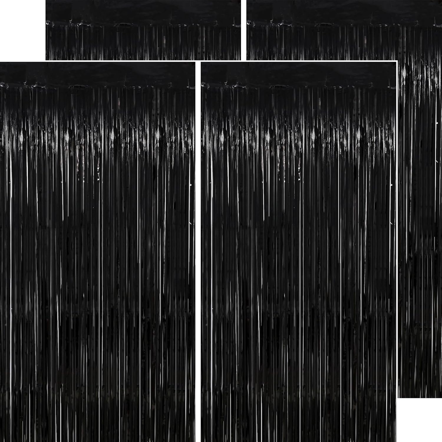 • πŸ‘.𝟐 𝐱 πŸ–.𝟐 𝐅𝐓 | πŸ’ ππ€π‚πŠ - This black metallic streamers are long enough to decorate doors or walls, you can freely adjust the length, width and thickness of them according to the desired scene. Paste them side by side for a wider range of decoration, stack 2 or more to achieve a thicker and denser effect.