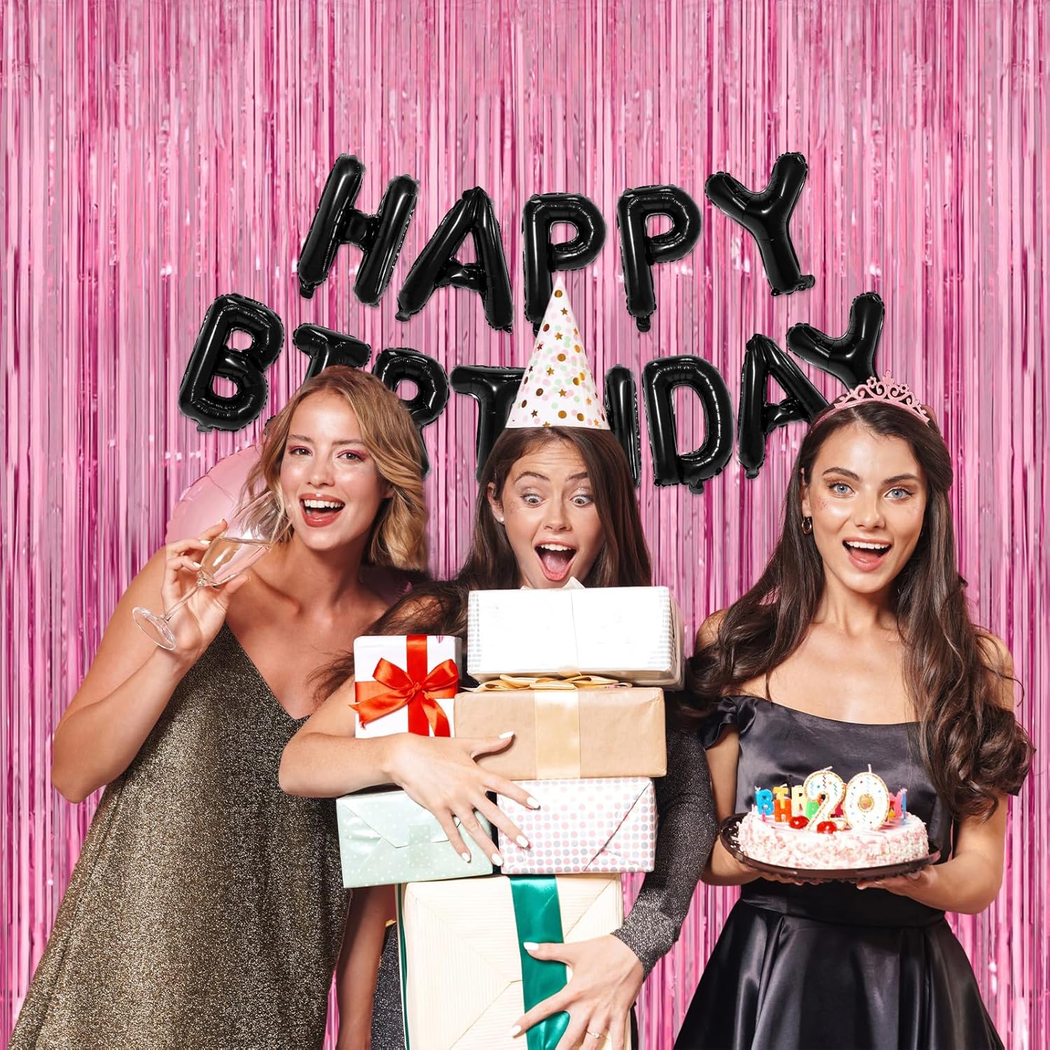 Pink Streamers Party Decorations - Thicken 4 Pack 3.2 x 8.2 FT - Pink Tinsel Foil Fringe Curtains, Photo Booth Props Backdrops for Birthday, Bachelorette, Graduation, Baby Shower Party Decorations