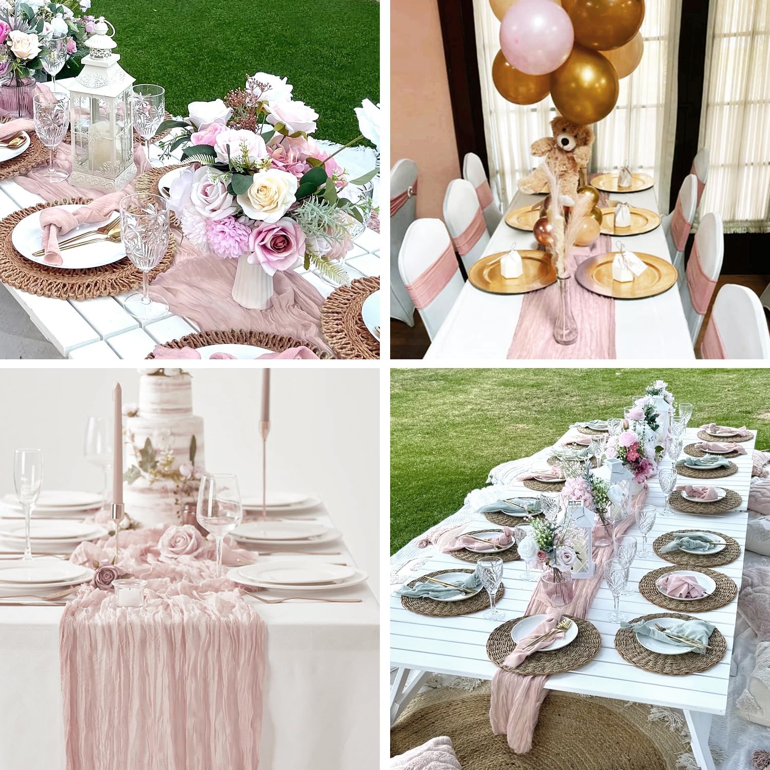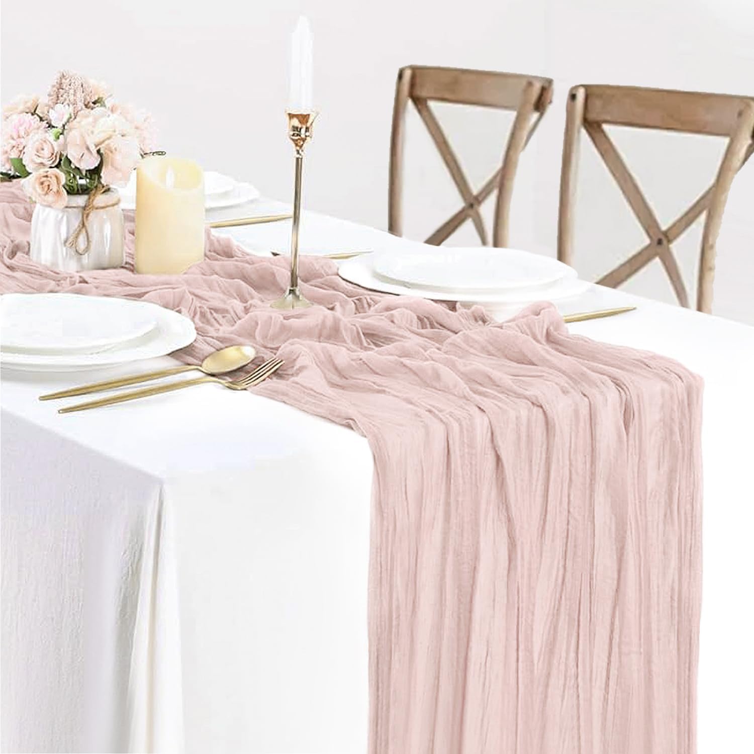 • 🌷【High-quality Cheesecloth Table Runner Dusty Pink】Cheese gauze table runner is made from cheese gauze fabric, soft to touch, reusable. Wrinkled design cheese cloth farbic, texture is fantastic, adopts seamless technique makes this sheer table runner more graceful than traditional fabrics. The boho pink runners for tables is sheer, natural drape, lightweight. Soft table linen with gorgeous finished edges drapes gracefully across your banquet table, adds to romantic, delicate, and flowy vibe.