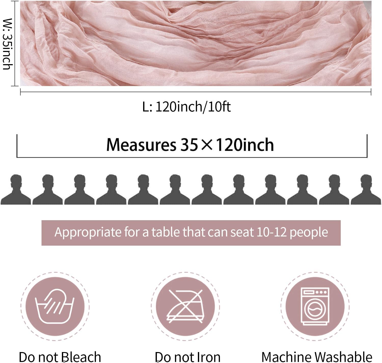 • 🌷【Care Instructions】These pretty blush table runner are recommended for hand wash in cold water with mild detergent, or machine wash in the gentle cycle with a laundry bag; In order to maintain wrinkled texture, please do not iron or use hot water, lay flat or hang dry, which are better for keeping these cheesecloth table runners for a long time use. Please kindly noted that there might be color variation due to screen resolution and limitations in photography.
