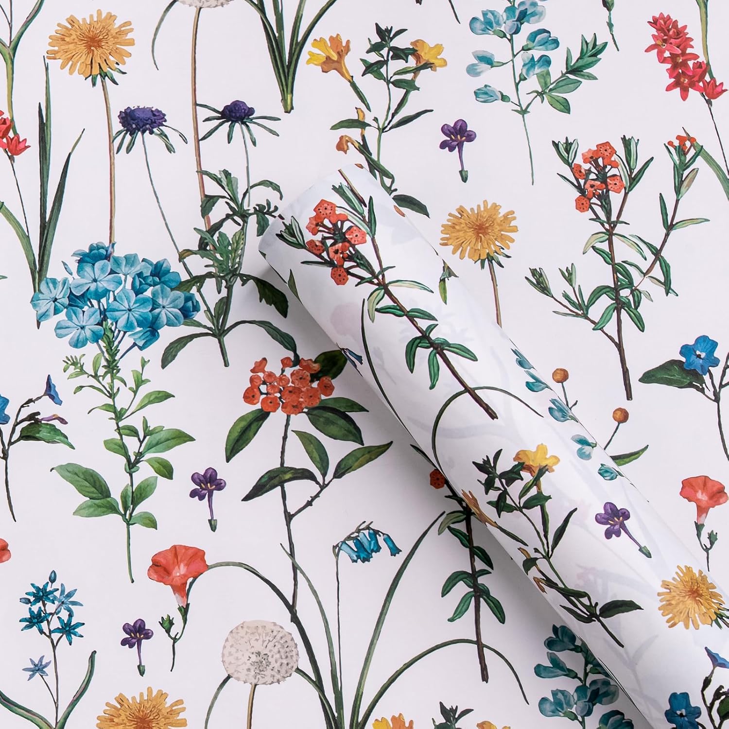WRAPAHOLIC Kraft Wildflower Wrapping Paper - Mini Roll - 17 Inch x 16.5 Feet - Floral Wrapping Paper for for Wedding, Birthday, Bridal Shower, Tea Party