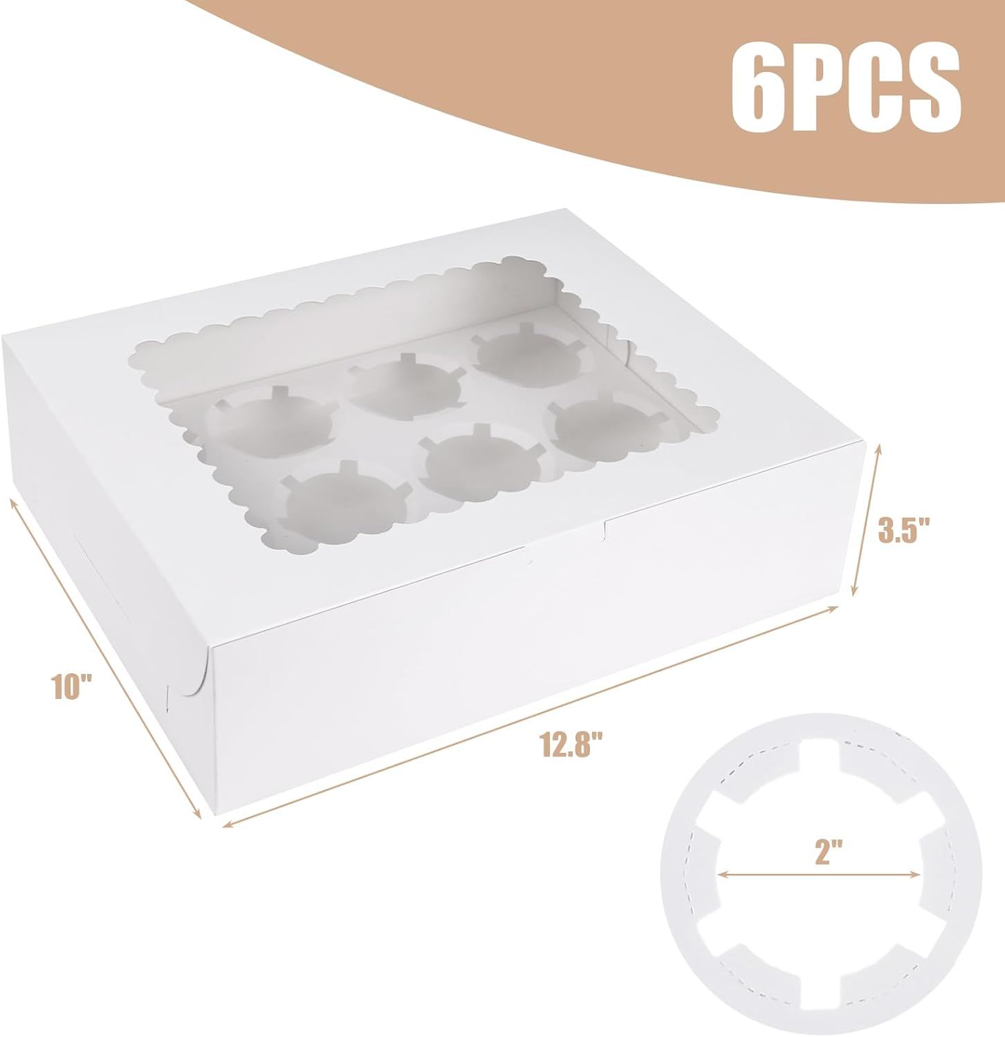 VGOODALL 6PCS White Cupcake Containers, 12 Count with Window Boxes Holding 72 Pastry Box for Birthday Holiday Party Bakery Supplies