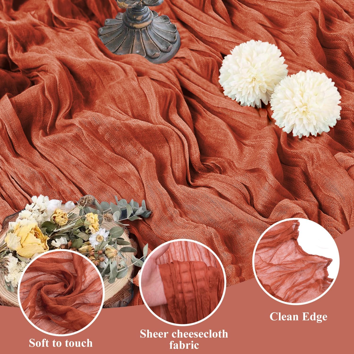 Asee'm 6pcs Cheesecloth Table Runner 120 Inches Long Terracotta Boho Gauze Cheese Cloth Runner 10FT Rustic Sheer Fall Table Runners for Thanksgiving Christmas Wedding Party Baby Shower Decoration