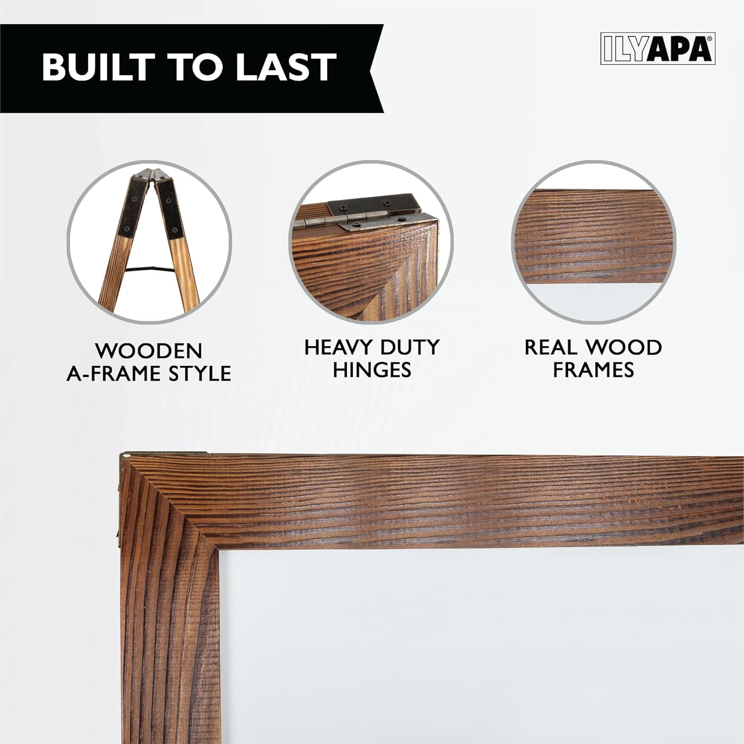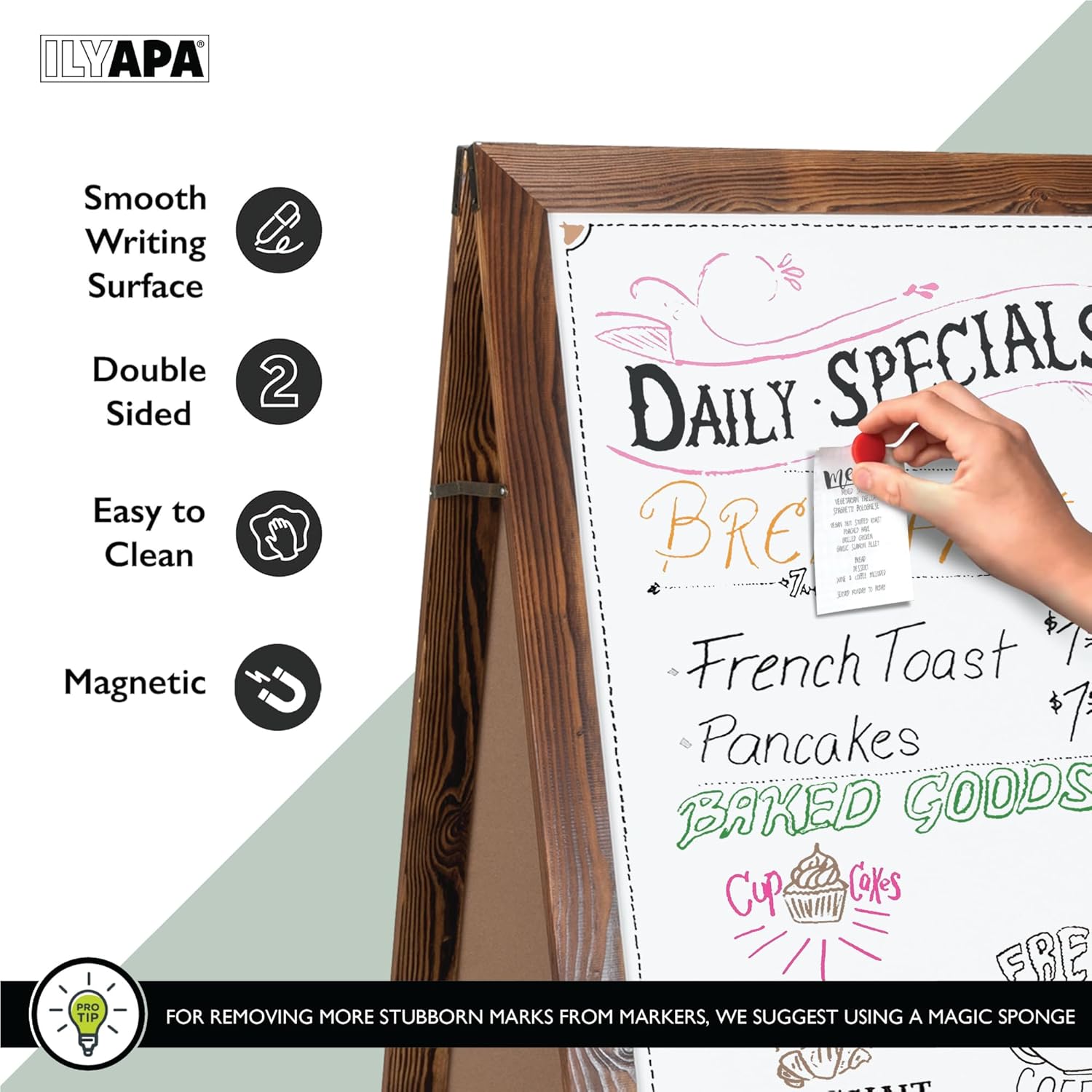Ilyapa Wooden Dry Erase A Frame Sign - Magnetic Whiteboard Sidewalk Menu Board Outdoor - Menu Display for Restaurant, Food Truck - 58x27 inch - Brown
