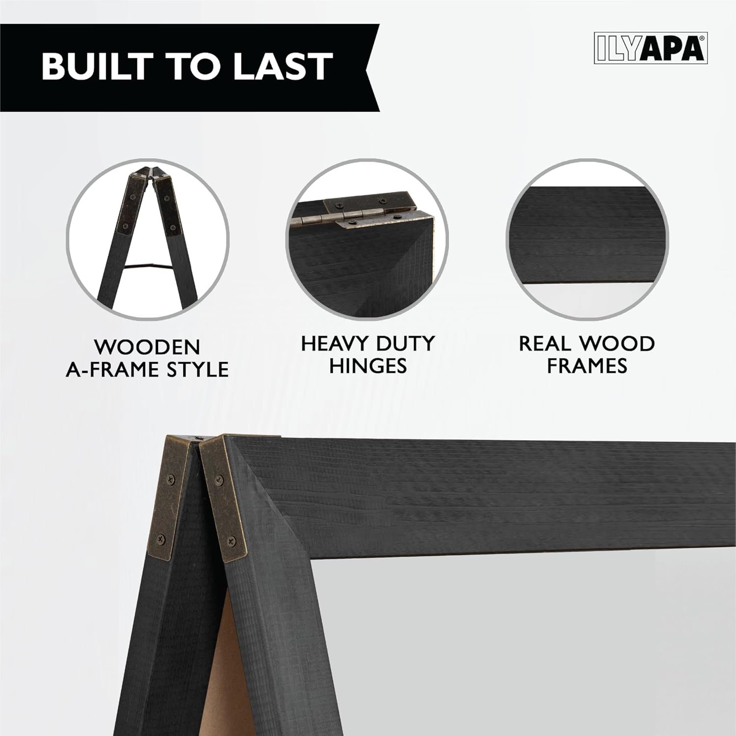 Ilyapa Wooden Dry Erase A Frame Sign - Magnetic Whiteboard Sidewalk Menu Board Outdoor - Menu Display for Restaurant, Food Truck - 58x27 inch - Black