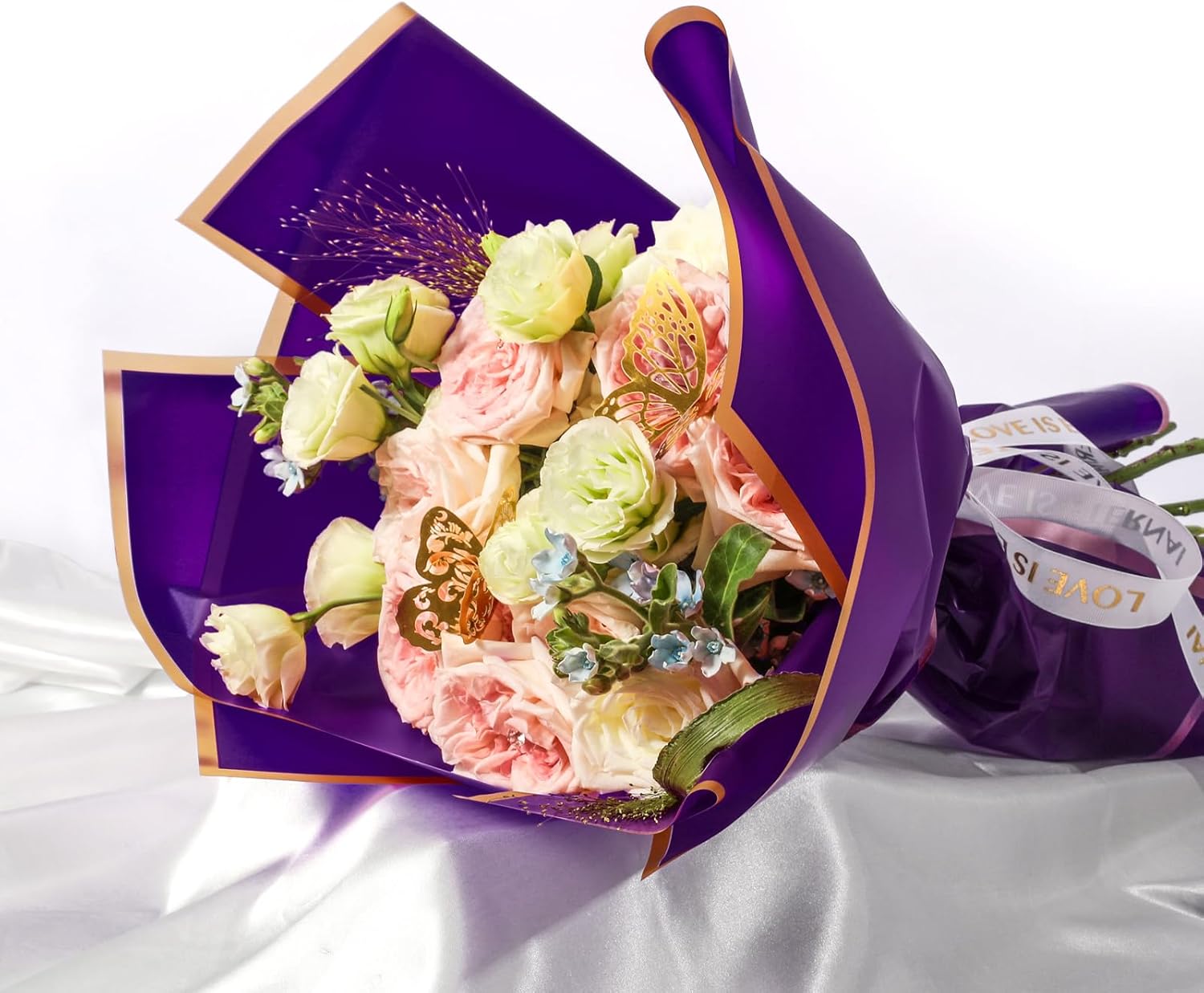 • 【Elegant Design】The florist paper is designed with gold edges, features glossy and vibrant colors, smooth and comfortable to touch. The lightweight and sturdy nature of the paper ensures a professional and exquisite appearance,Is the perfect choice for bouquet packaging and gift box packaging