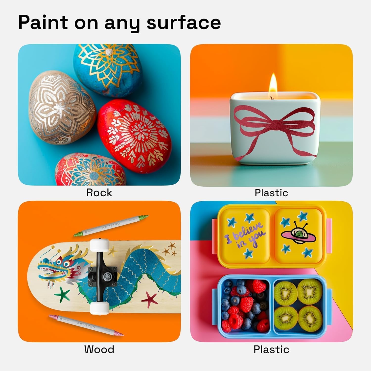 • MULTI-SURFACE: Artistro craft drawing markers are perfect for almost any surface. Paint on rocks, wood, glass, or more with these paint pens! Or use them as fabric paint pens.
