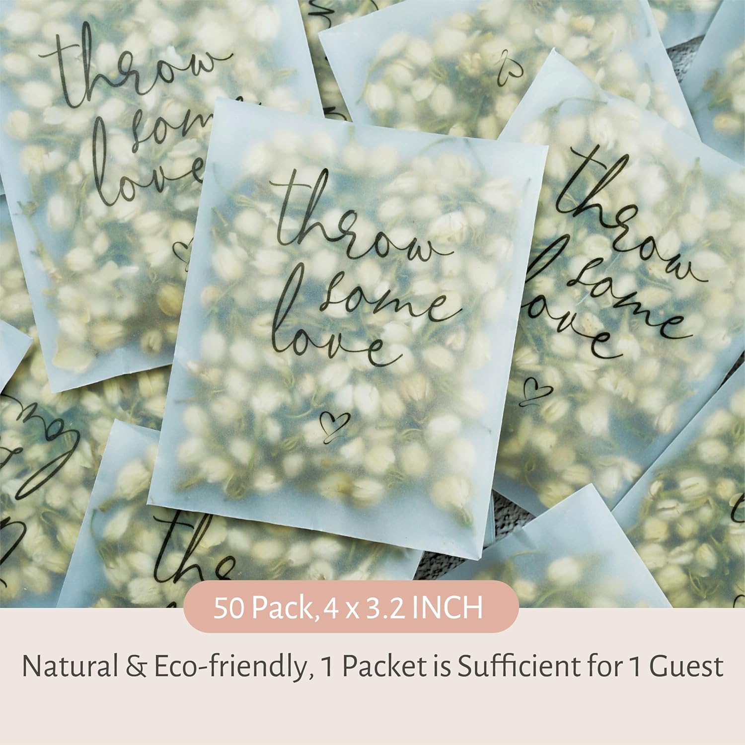Rainbow Pana 50 Pack Prefilled Confetti Packets | Biodegradable Confetti, Dried Flower Petals | Real Flower Petals to Throw at Wedding, Glassine Bags Rose Wedding Send Off Ideas