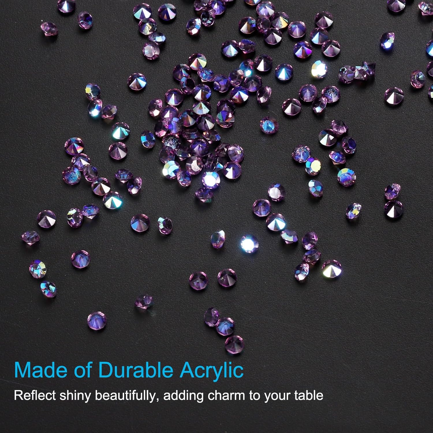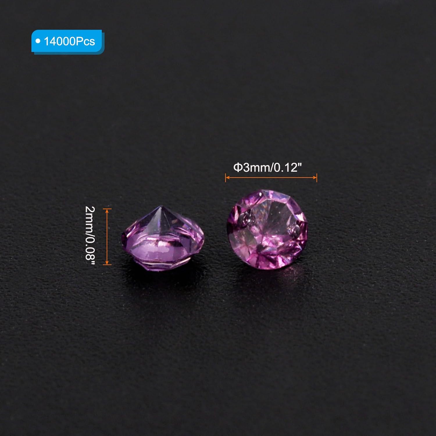 • Color: Dark Purple AB; Material: Acrylic; Size: 3mm x 2mm/ 0.12 x 0.08 inch (Dia.x H); Packing List: 14000Pcs x Acrylic crystal diamonds