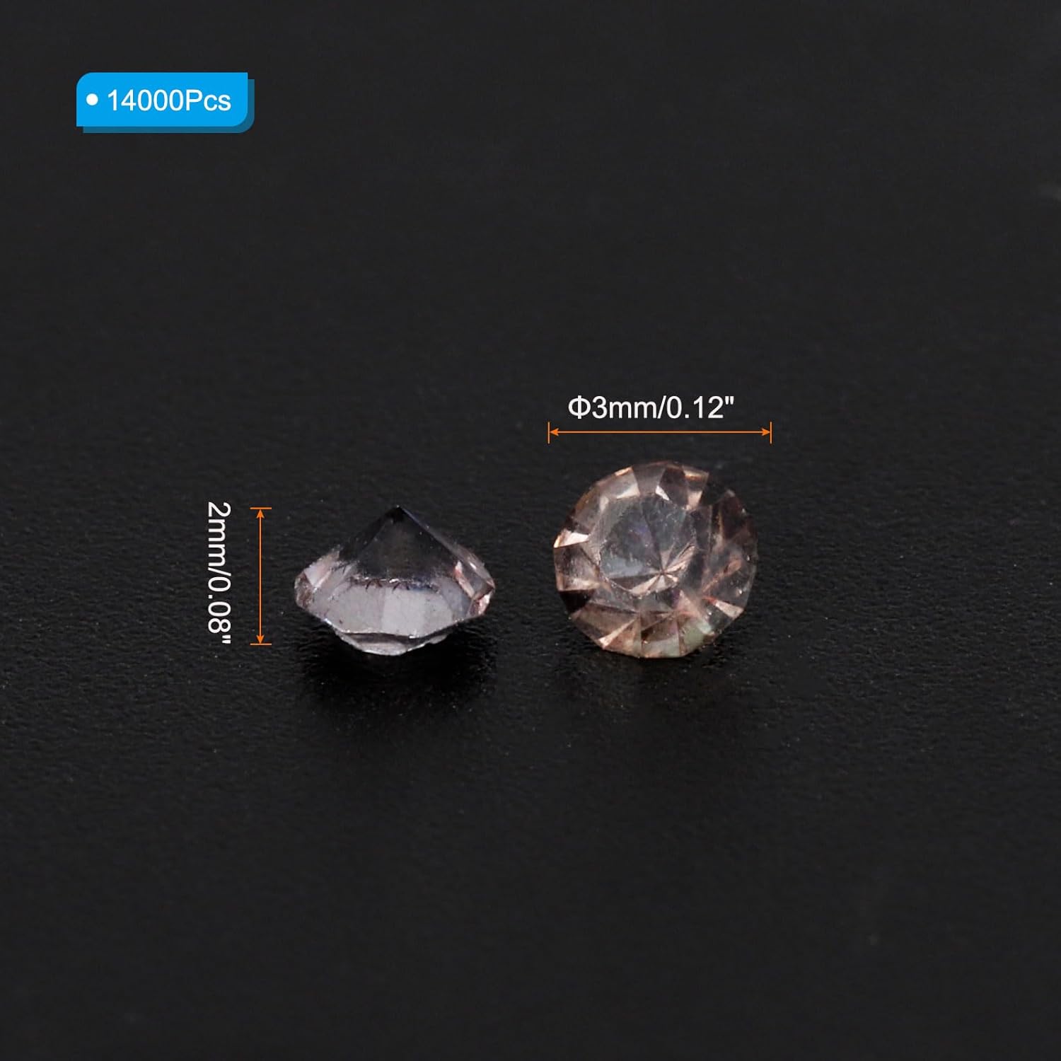 • Color: Gray AB; Material: Acrylic; Size: 3mm x 2mm/ 0.12 x 0.08 inch (Dia.x H); Packing List: 14000Pcs x Acrylic crystal diamonds