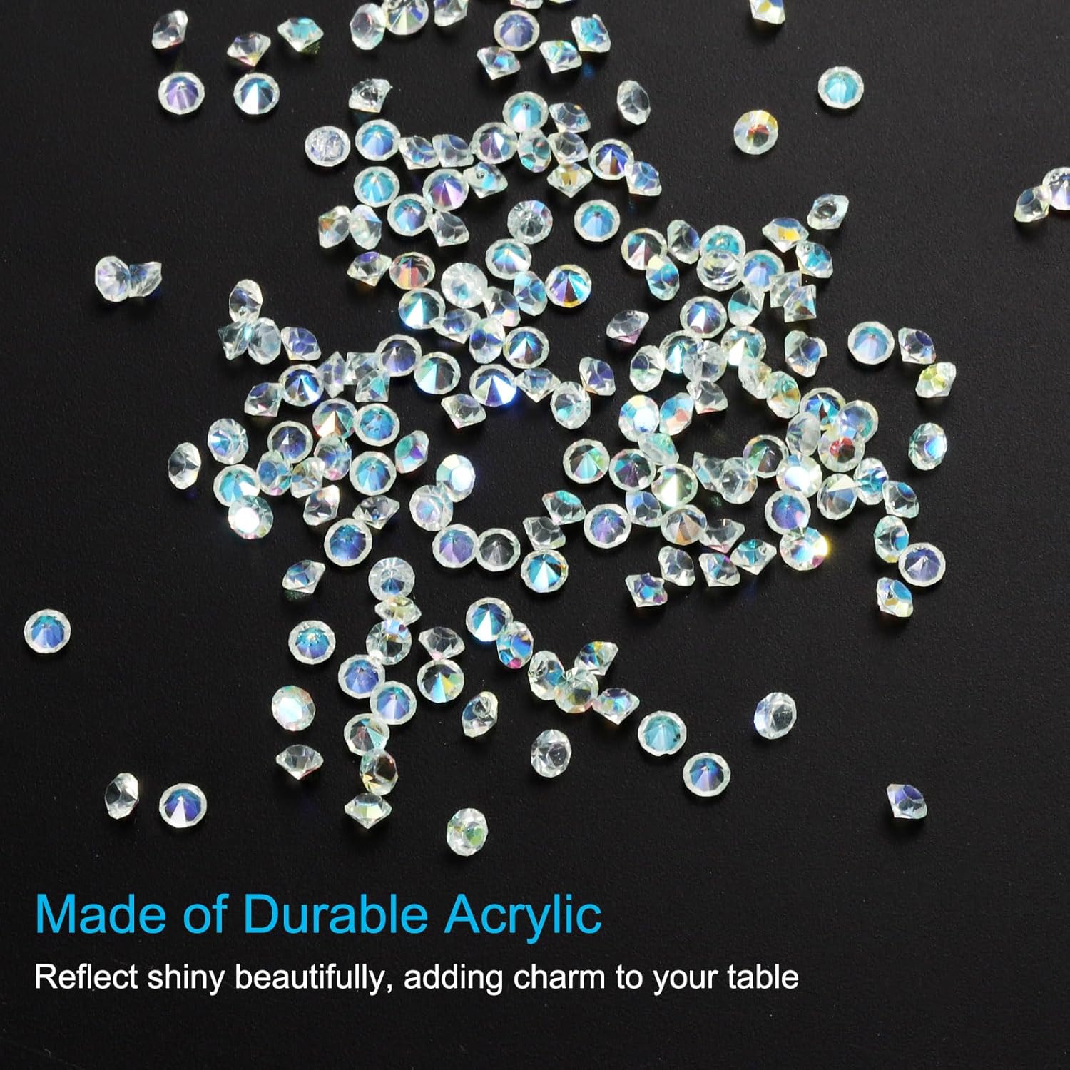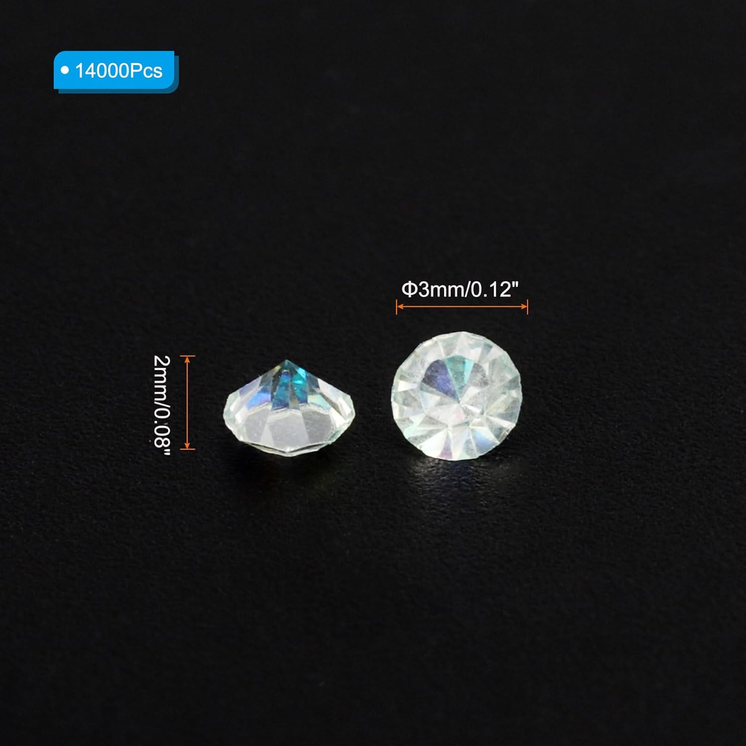 • Color: Mint Green AB; Material: Acrylic; Size: 3mm x 2mm/ 0.12 x 0.08 inch (Dia.x H); Packing List: 14000Pcs x Acrylic crystal diamonds