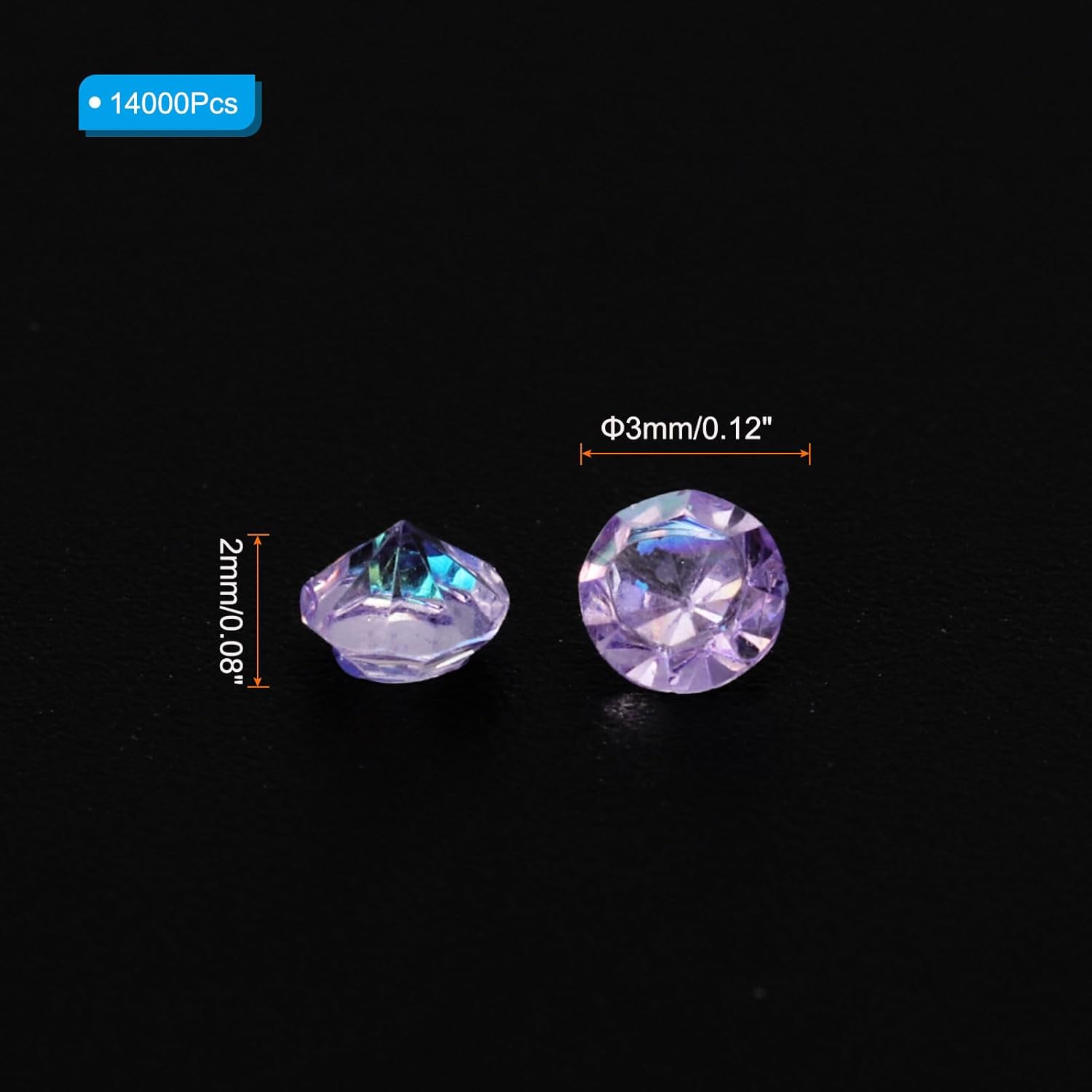 • Color: Purple AB; Material: Acrylic; Size: 3mm x 2mm/ 0.12 x 0.08 inch (Dia.x H); Packing List: 14000Pcs x Acrylic crystal diamonds