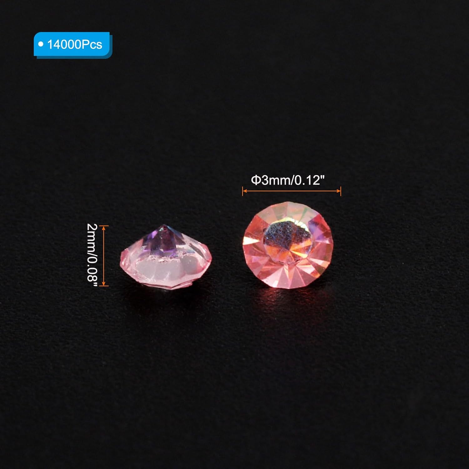 • Color: Dark Pink AB; Material: Acrylic; Size: 3mm x 2mm/ 0.12 x 0.08 inch (Dia.x H); Packing List: 14000Pcs x Acrylic crystal diamonds
