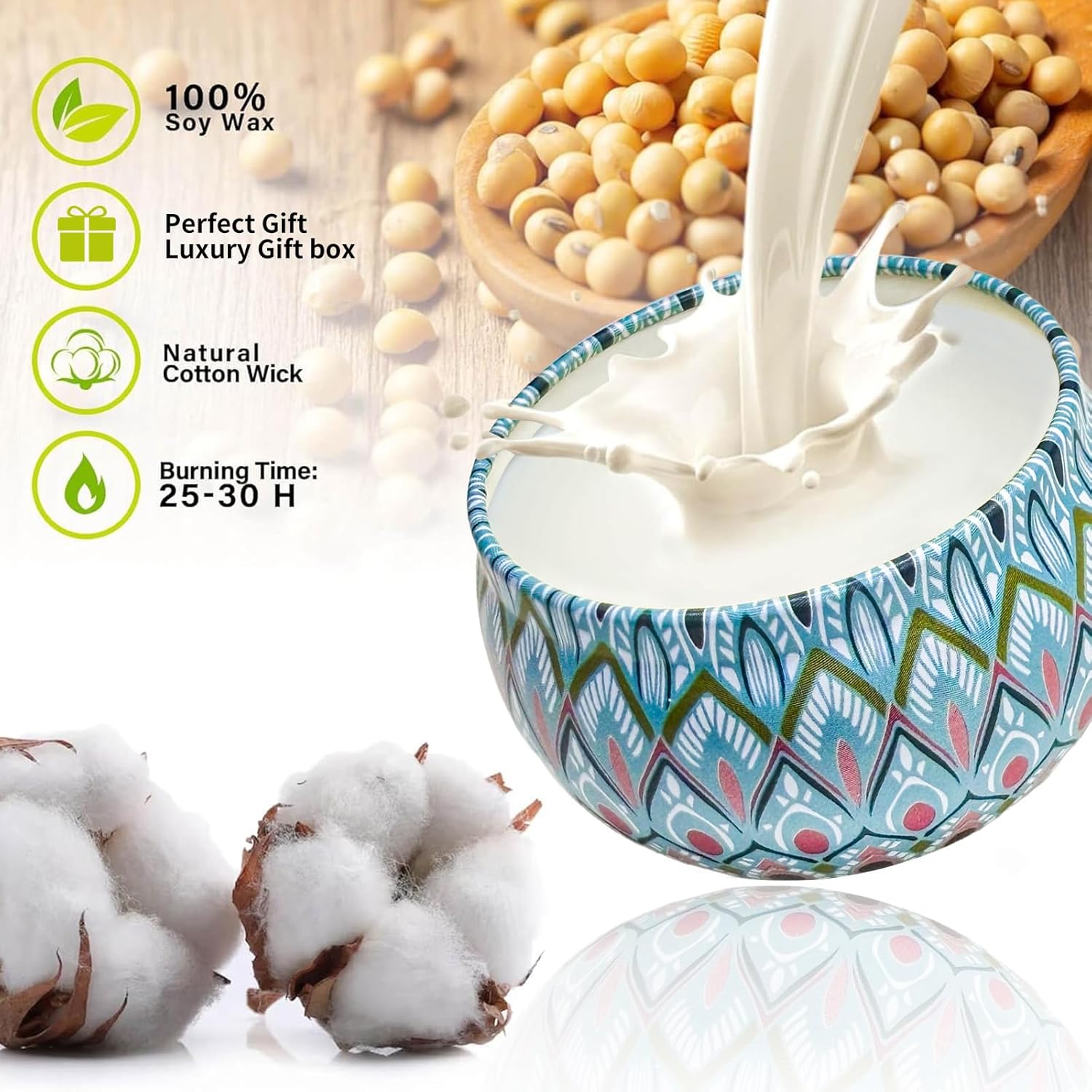 • Long Lasting Candle Set - Each Jar candle contains 2.5 ounces of soy wax and lasts for over 25 hours, you can trim the wick to increase burn time. The complete burning time of 12 scented candles is 300 hours.Candles are packaged in jars printed with beautiful textured patterns, and when burned, the jars can be used to decorate a room or hold small items