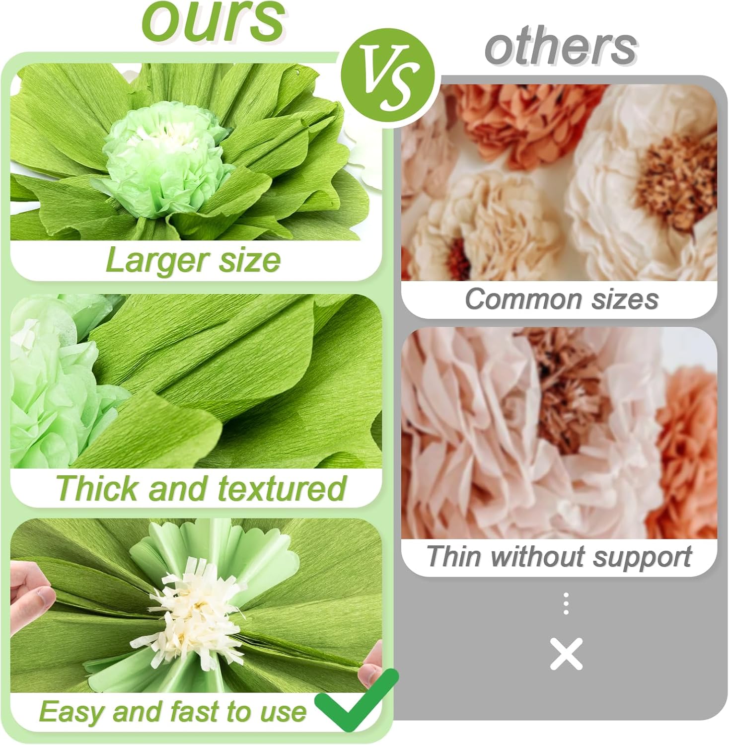 • Premium Customer Service: Crafted with durable materials, these decorations are made to last. Please reach out with any questions you have, and we will get back to you in 24 hours. These tissue flowers will bring lasting joy to your home and celebrations.